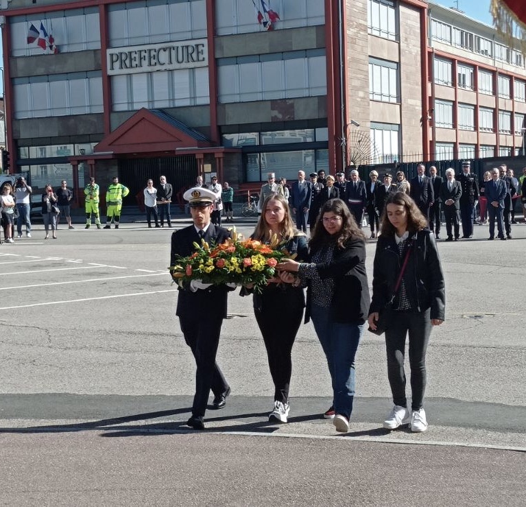 Les lycéennes ont également participé à la remise de gerbe au côté du Capitaine de Corvette, Arnaud Voiry, de retour dans sa ville natale pour cette célébration.