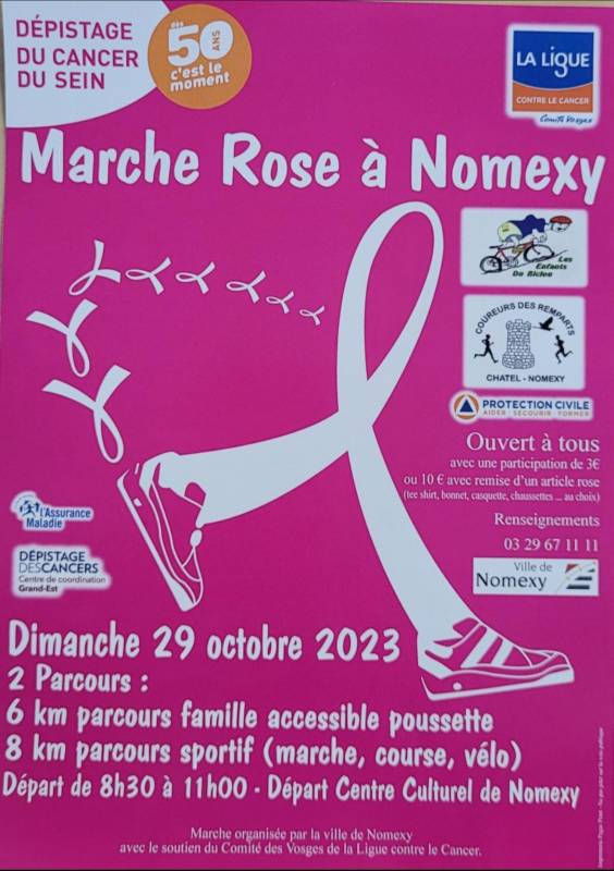 Dans le cadre d’Octobre rose, les associations des enfants du biclou et des coureurs des remparts organisent le dimanche 29 octobre une marche rose à Nomexy. La protection civile sera également présente sur l’évènement.