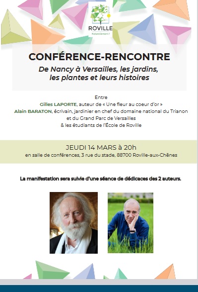 - une conférence ouverte au public sur réservation et animée par les étudiants, à 20h sur le thème « De Nancy à Versailles, les jardins, les plantes et leurs histoires », suivie d’une séance de dédicaces.