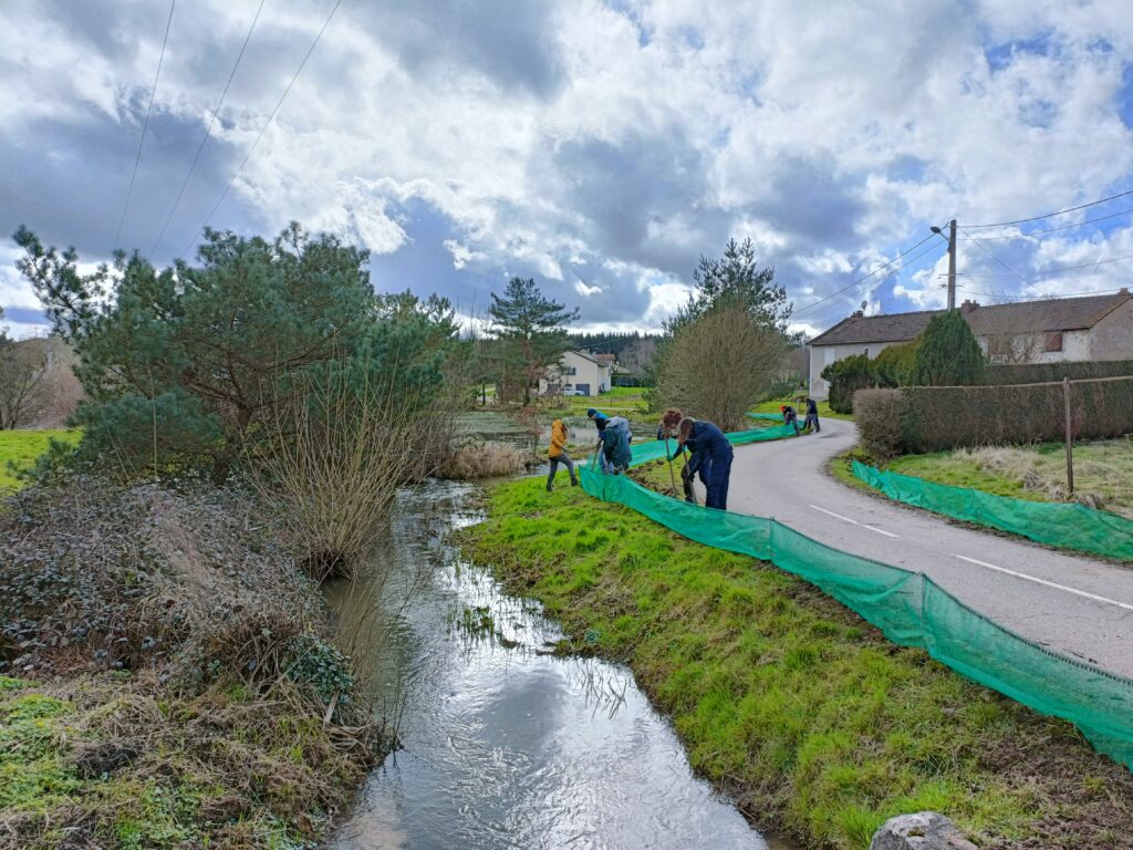 Samedi 24 février, plus d’une vingtaine de bénévoles sont venus prêter main forte au chantier de mise en place des crapaudromes. Les équipes composées de riverains, d’habitants de la commune, de membres des associations « Etc terra » et « Il est encore temps en Déodatie » et d’élèves du BTS « Gestion et Protection de la Nature » de Roville-aux-Chênes ont mis en place 600m de dispositif.