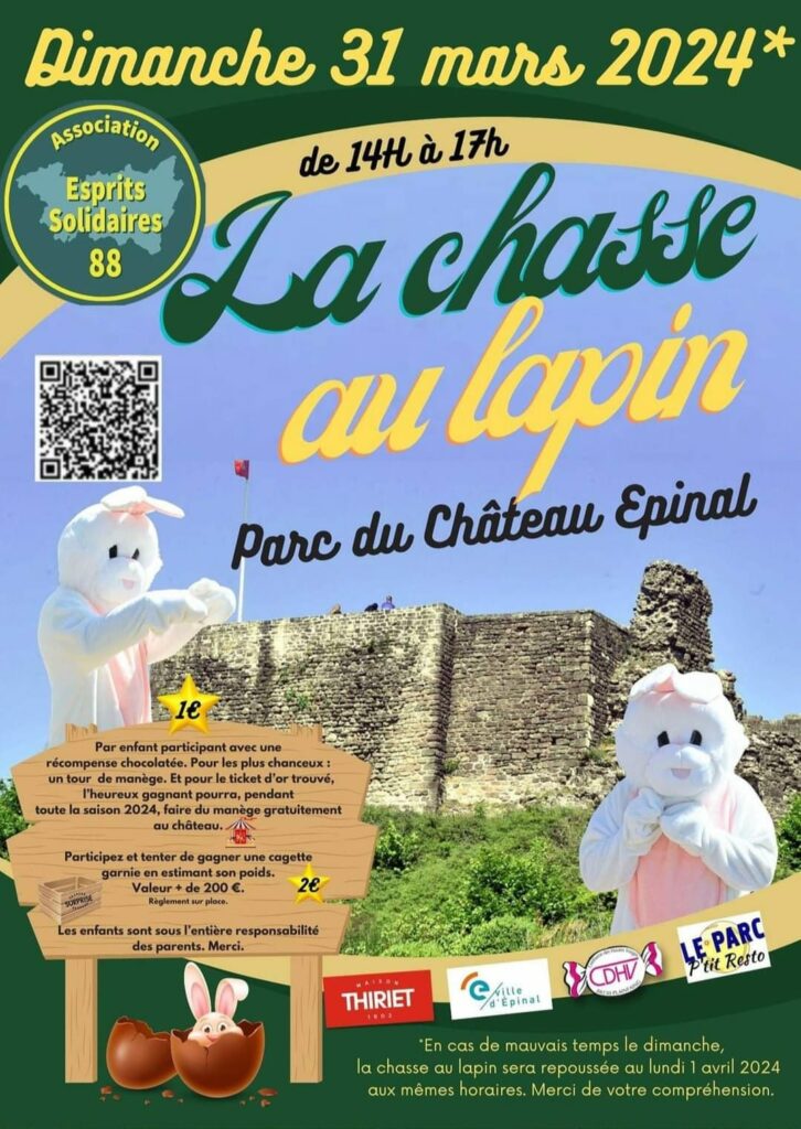 Rendez-vous dimanche 31 mars, de 14h à 17h au parc du château d’Epinal, pour une chasse au lapin de Pâques.