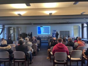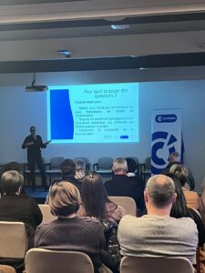 50 personnes étaient présentes lors de cette conférence. L’évènement a a allié : temps de paroles de l’intervenante, temps de questions mais aussi des échanges pendant la conférence entre les personnes présentes sous forme de «1 minute pour échanger avec mon voisin de droite »/ « deux minutes pour connaître l’entreprise de mon voisin de gauche » et ainsi créer des liens et du réseaux (base d’une bonne transmission d’entreprise). Les discussions se sont poursuivies pendant l’apéritif dinatoire, ensuite.