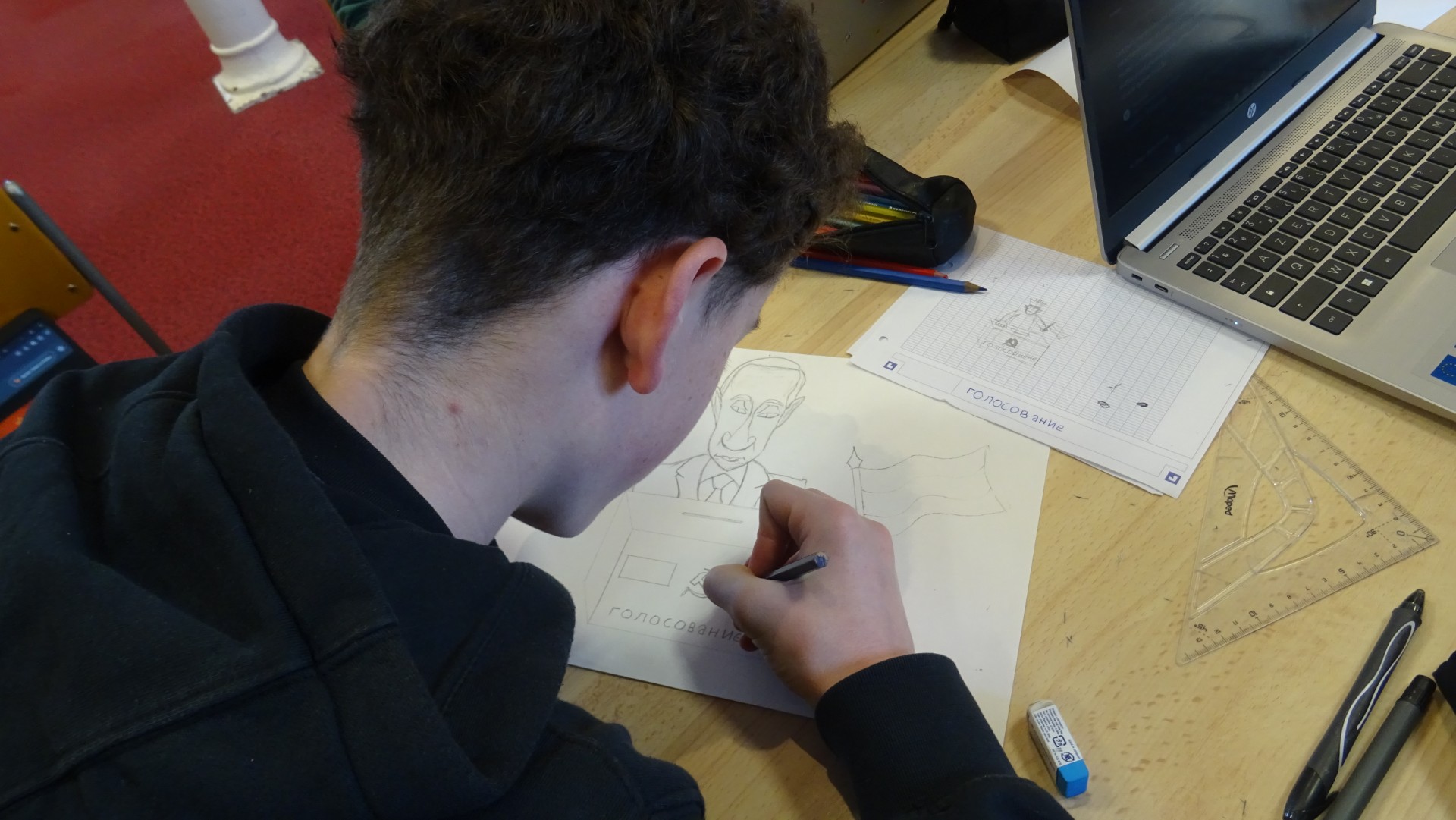 A midi, l’affaire était entendue et nos journalistes présentaient avec fierté leur maquette. Atilla « C’était épuisant mais tellement sympa ! Je ne pensais pas que nous étions capables de travailler tous ensemble et de réaliser des vraies Unes ». Erdzan : « C’est la première fois que nous travaillons en temps réel, quelle aventure ! »
