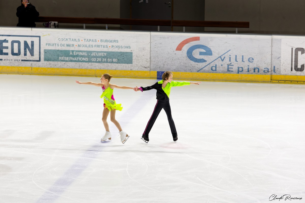 Lucie Fredon et Luc Walker, solides sur leurs trois épreuves, ont su séduire le jury et le public. Ils repartent avec une très prometteuse médaille de Bronze en catégorie Novice (une première depuis 10 ans pour un couple spinalien). De leur côté, Alice Messein et Pierrick Boguenet signent une belle remontée et prennent la 5ème place en catégorie Benjamin. Faustine Paternotte et Clément Bontemps, tout comme Valentine Hardt et Cyrian Feuerstein ont assuré de belles performances en catégorie Minime et prennent respectivement les 7ème et 9ème places.