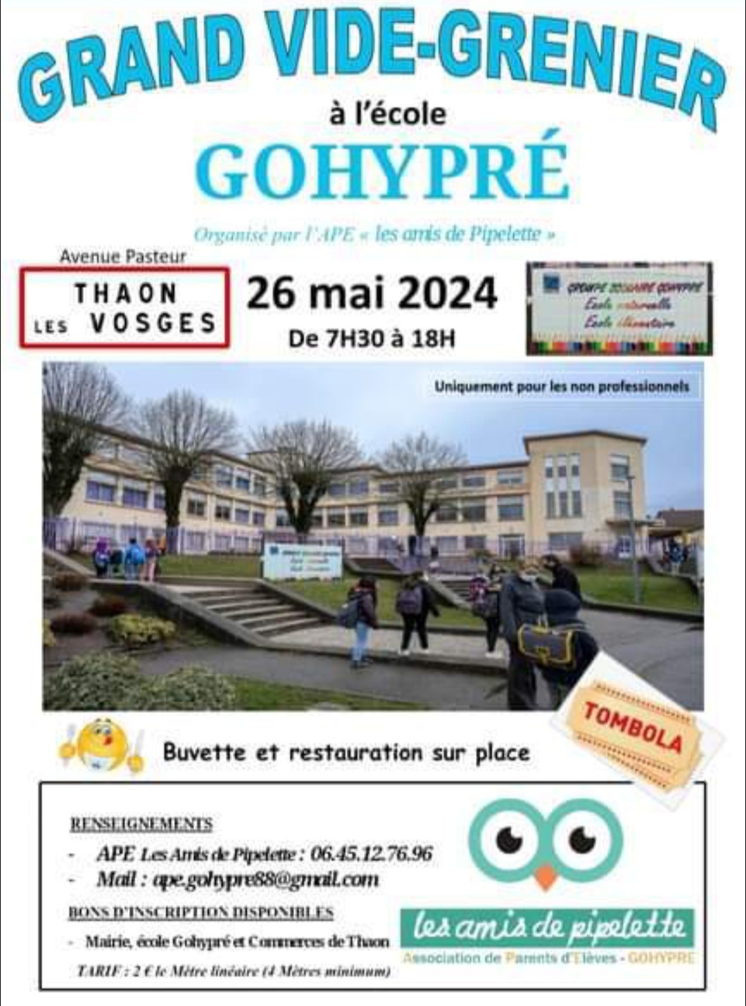 Les membres de l’Association des parents d’élèves de l’école Gohypré de Thaon-les-Vosges organisent un vide greniers le 26 mai 2024.