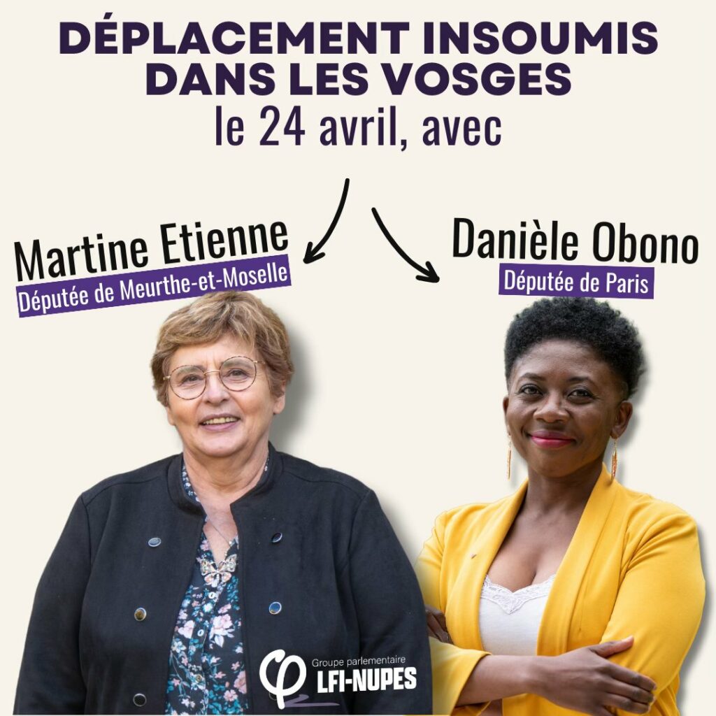 Les députées LFI Danièle Obono et Martine Etienne seront en visite à Épinal ce mercredi 24 avril.