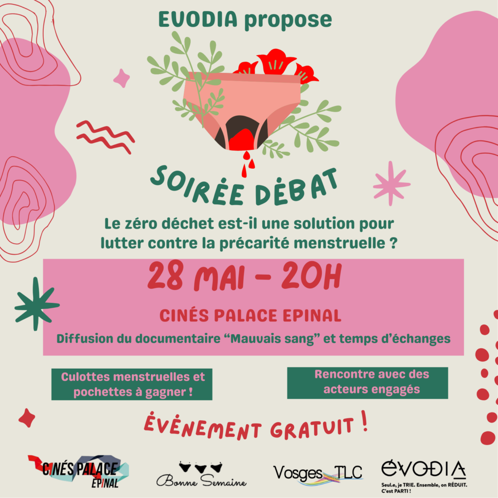 Le 28 mai est la journée mondiale de l’hygiène menstruelle. A cette occasion EVODIA, en partenariat avec Vosges TLC et Bonne semaine, organise une soirée débat sur le sujet : « le zéro déchet est-il une solution pour lutter contre précarité menstruelle ? ».