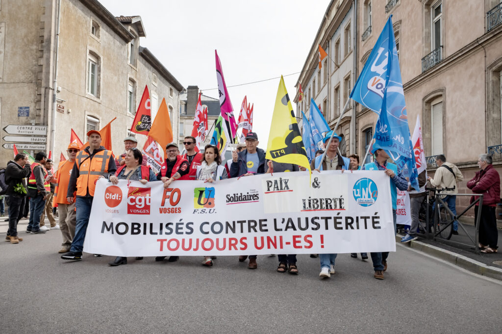 Ce mercredi 1er mai, avait lieu la traditionnelle manifestation à l’occasion de la fête du Travail. A l’appel des syndicats vosgiens, près de 400 manifestants étaient rassemblés à 10h devant la Bourse du travail avant de défiler dans les rues du centre-ville d’Epinal.