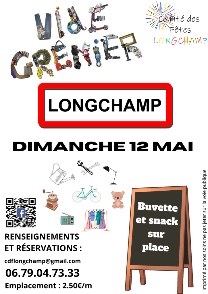 Le comité des fêtes de Longchamp organise son vide grenier dimanche 12 mai , avec une centaine d’exposants sur 650 mètre linéaire de stand