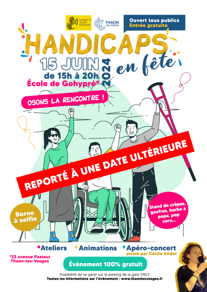 L’événement Handicaps en Fête est reporté à une date ultérieure au vu des prévisions météorologiques très mitigées annoncées ce samedi après-midi.