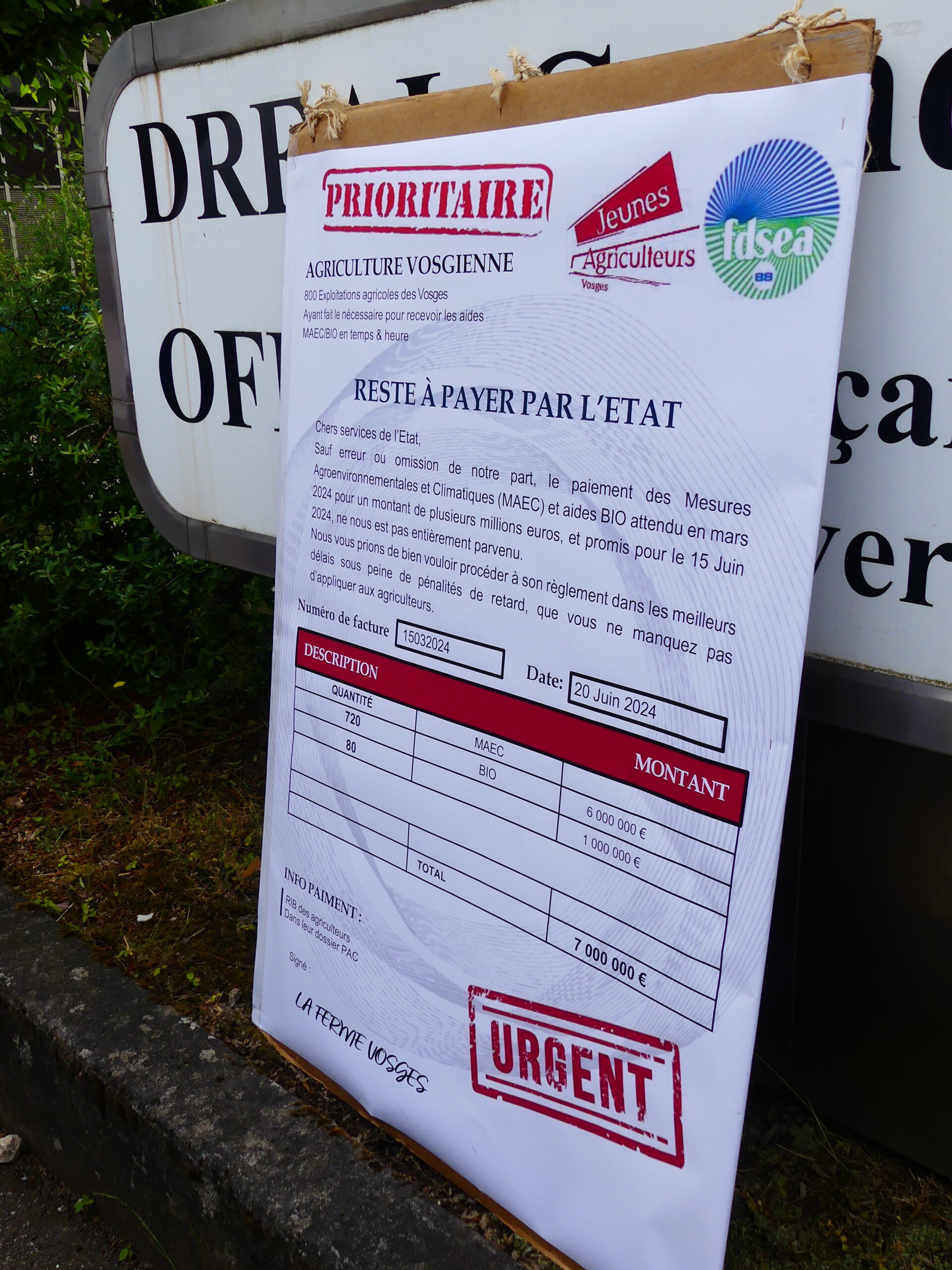 Bien que certaines aides aient été payées, il n’y a aucun département et les Vosges ne font pas exception où l’intégralité des aides a été versée. « L’ultimatum pour le versement des aides MAEC et Bio, posé par le réseau FNSEA/JA au 15/06 est passé. La situation est inadmissible ! » poursuivent les agriculteurs.