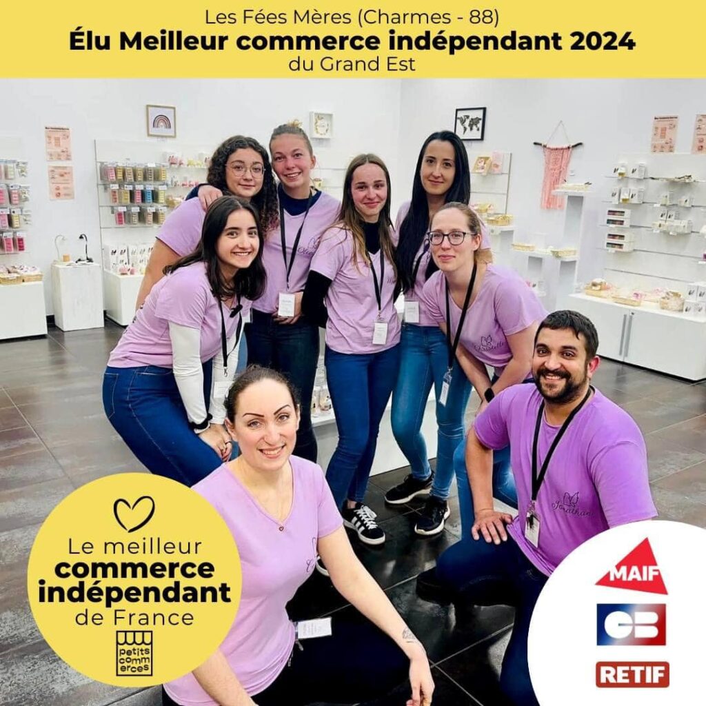 Sélectionné parmi plus de 1000 commerces, le commerce « Les Fées Mères » basé dans les Vosges, à Charmes, a été élu « Meilleur commerce indépendant du Grand Est 2024 » ! La boutique propose des bougies artisanales gourmandes et 100% végétales.