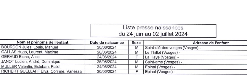 Deprecated: Use of "parent" in callables is deprecated in /project/VIDEV/web/app/plugins/simple-lightbox/includes/class.options.php on line 501 Les naissances du 24 juin au 2 juillet - Epinal Info