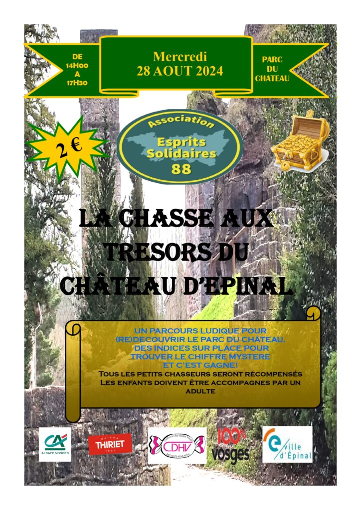 L’association Esprits solidaires 88 organise une chasse aux trésors dans le parc du château le mercredi 28 août 2024 en même temps que sa dernière buvette aux livres.