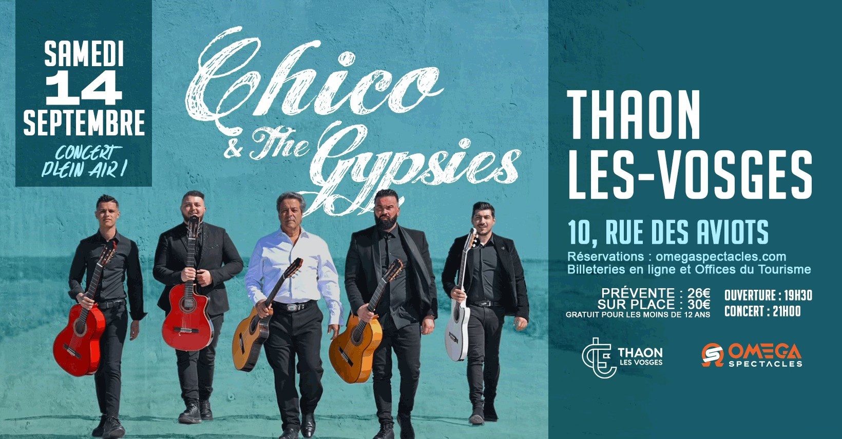 Le samedi  14 Septembre 2024 aura lieu le concert en plein air du célèbre groupe Chico et The Gypsies, en plein air à Thaon-Les-Vosges, 21h, au 10 rue des Aviots.