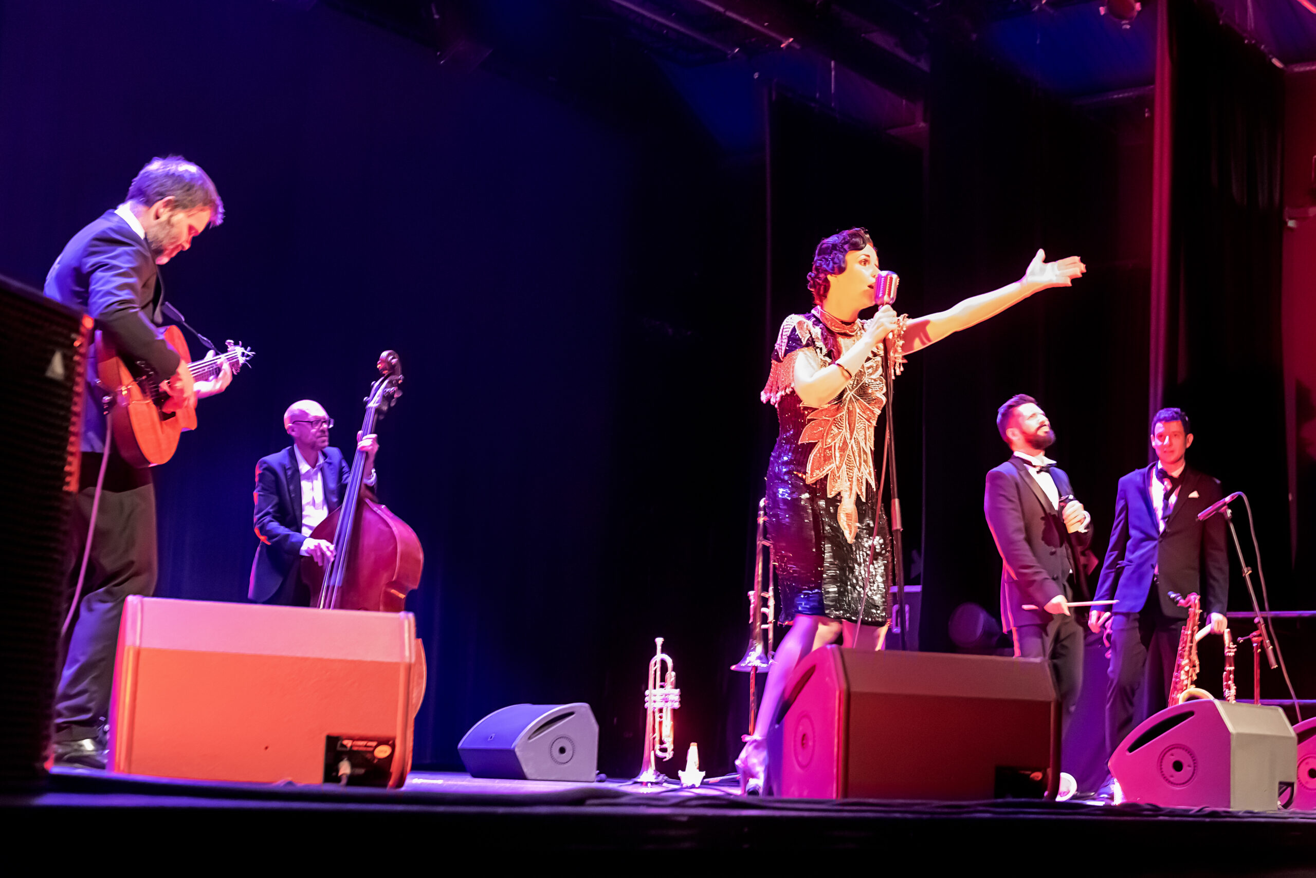 L’événement musical de la soirée du 2 août 2024 dans la salle de la Louvière a marqué les esprits et réchauffé les cœurs. Le groupe de jazz swing Ô de Mon Chéri a offert une performance qui restera gravée dans les mémoires des spectateurs présents ce soir-là. La salle, pourtant modeste, s’est transformée en un véritable temple du jazz, rappelant les clubs intimes des années 1930 où la musique et l’émotion régnaient en maîtres.