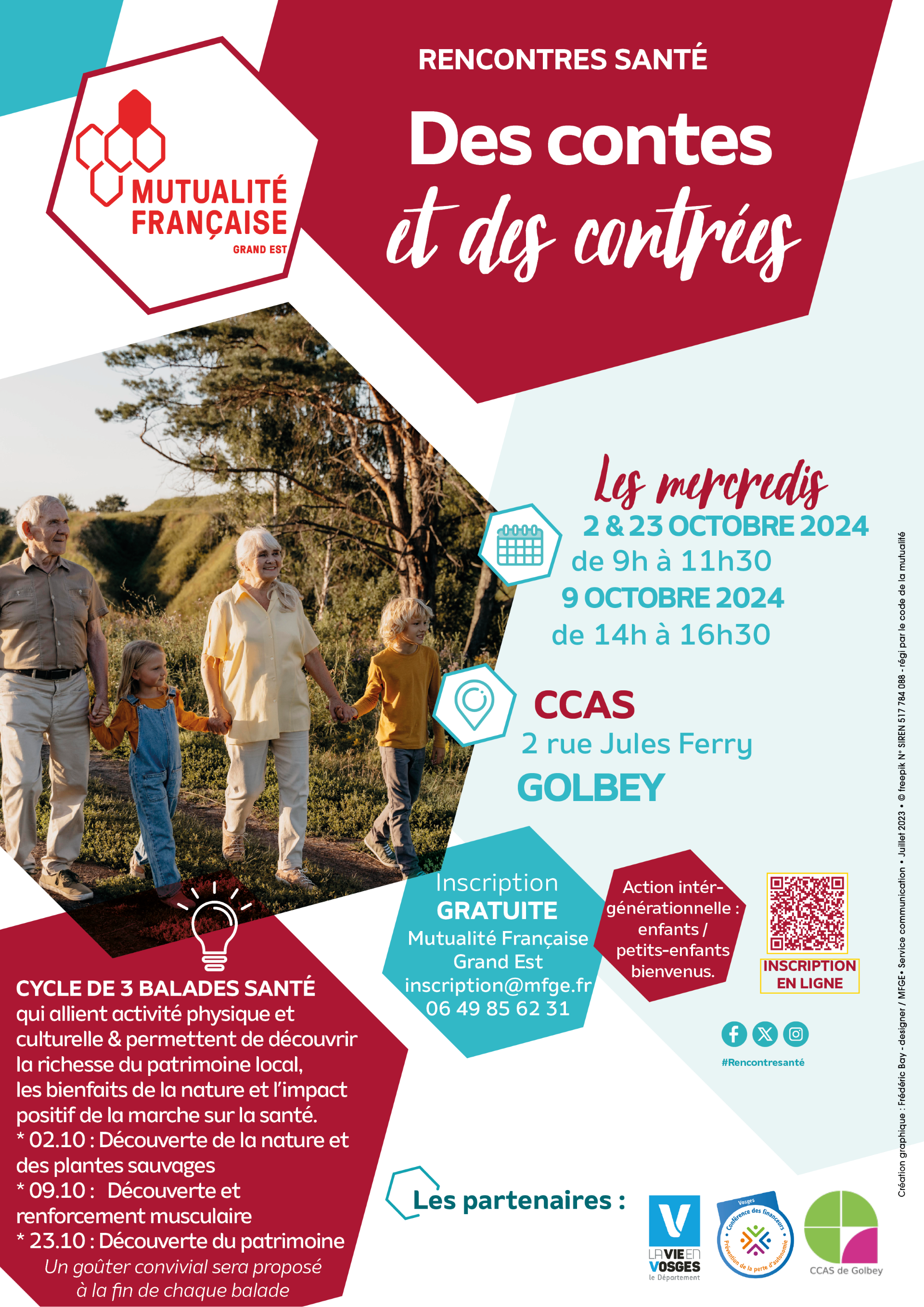 La Mutualité Française Grand Est & ses partenaires organisent à Golbey dès le 2 octobre trois balades santé visant à découvrir la richesse du patrimoine local & les bienfaits de l’activité physique. Ces balades sont intitulées « des contes et des contrées, la santé en balade ».