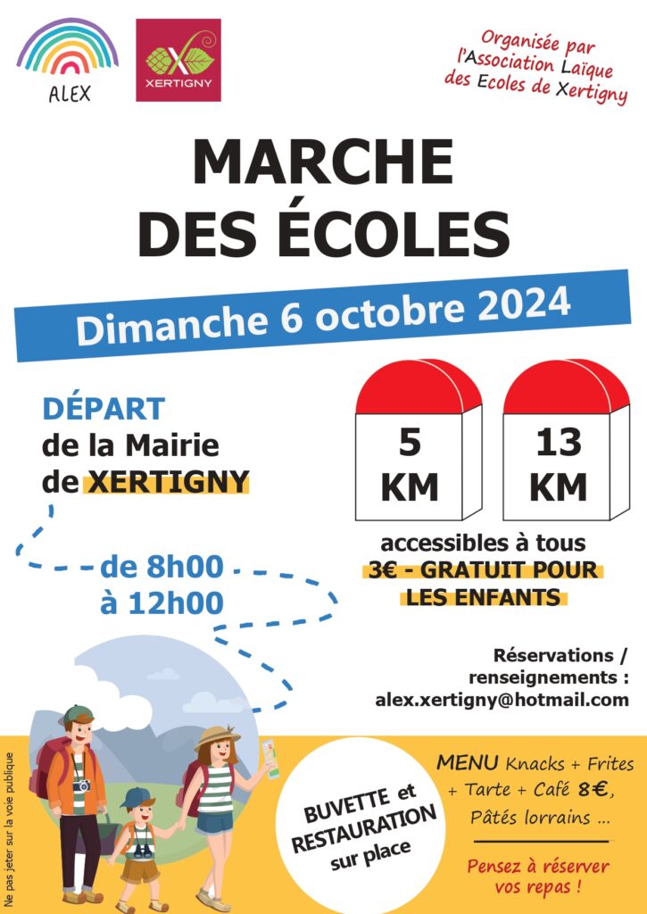 L’Association Laïque des Ecoles de Xertigny (ALEX) organise dimanche 06 octobre une Marche des Ecoles.