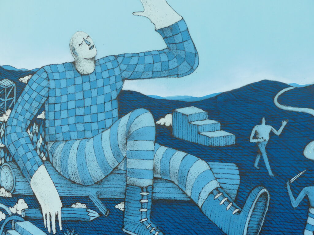 Né à Tours en 1994, Dawal travaille à Paris. Son univers graphique, coloré et vivant, s’est construit au cours de peintures urbaines au cours de nombreux voyages. Très vite, son trait s’oriente sur une base surréaliste. Ses oeuvres aspirent toujours à l’évasion de l’esprit et mêlent atmosphères urbaines et rêveries enfantines.