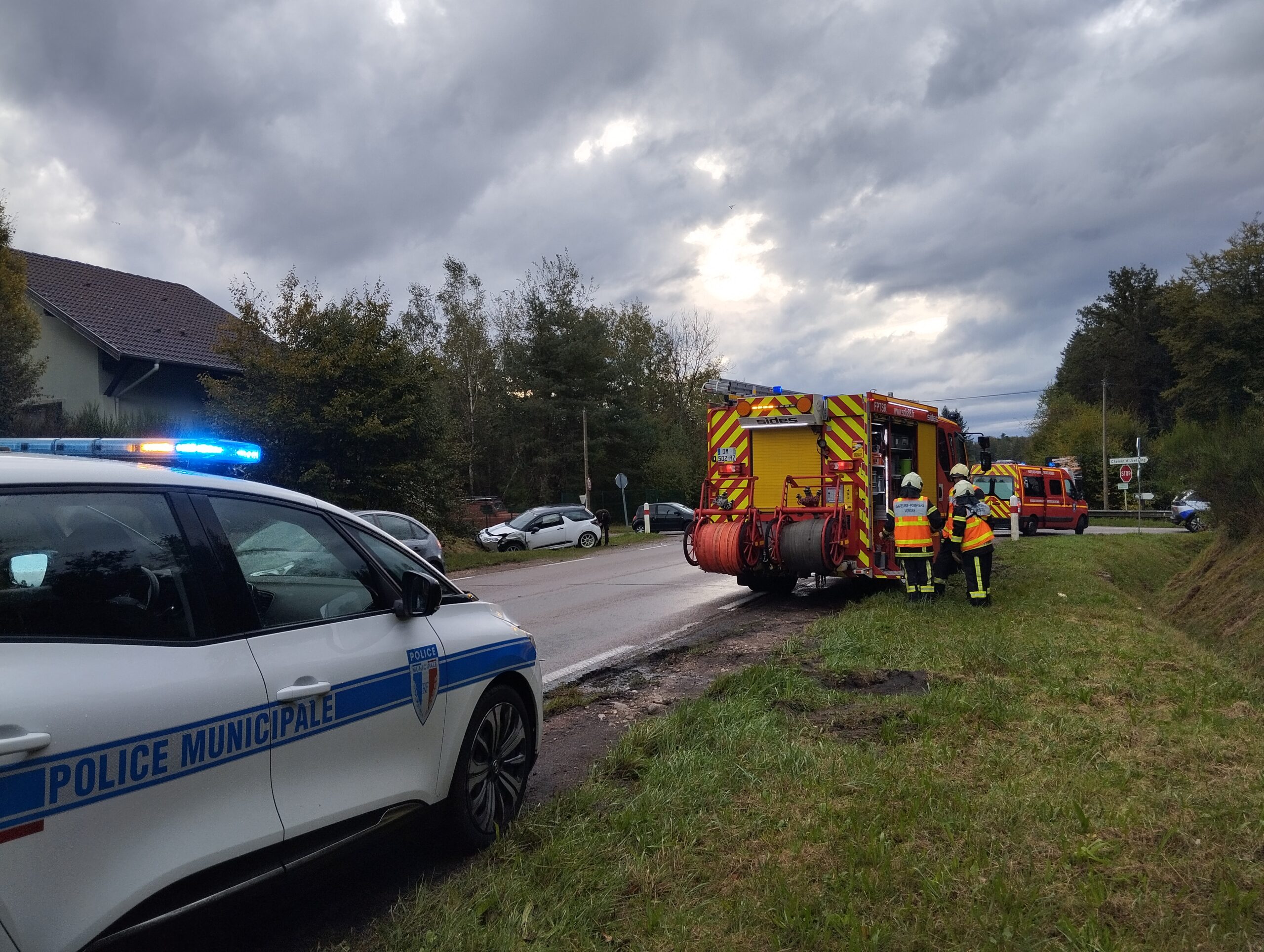7 sapeurs-pompiers d’Epinal étaient sur les lieu, ainsi que la police nationale et municipale. La circulation était ralentie sur le secteur.