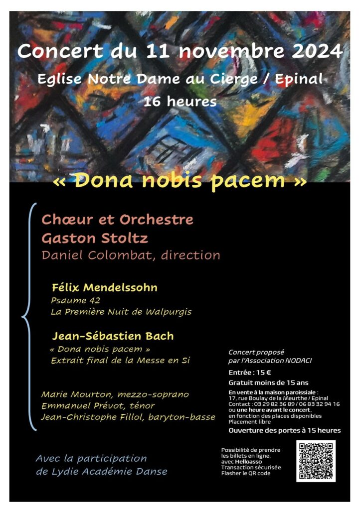 L’association NODACI propose comme chaque année un concert dans l’église Notre Dame au Cierge d’Epinal, le 11 novembre à 16 h.