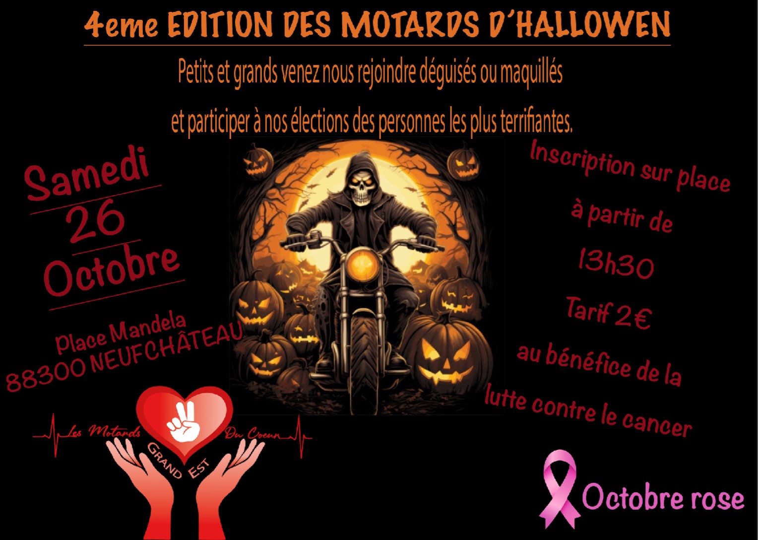 Comme chaque année, dans le cadre d’Octobre Rose, l’association Les Motards du Cœur Grand Est, organise un défilé d’Halloween dont les bénéfices sont intégralement reversés à ligue contre le cancer.