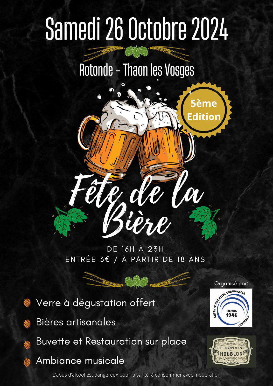 La 5eme édition de la Fête de la bière de l’EST Centrale, organisée par l’Entente Sportive Thaonnaise Centrale aura lieu Samedi 26 octobre 2024 de 16 h à 23 h dans la Salle Ronde de La Rotonde à Thaon-les-Vosges.