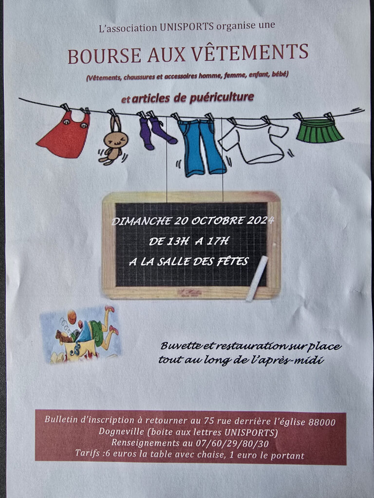 Unisports Dogneville organise une bourse aux vêtements dimanche 20 octobre et un loto d’Halloween.
