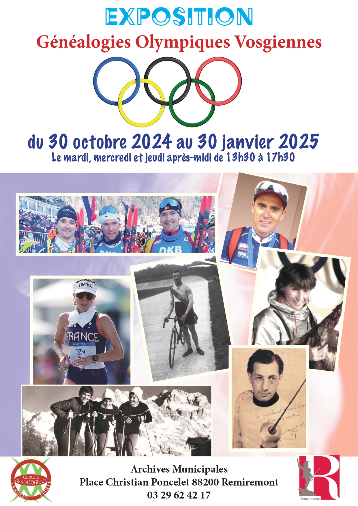 Du 30 octobre 2024 au 30 janvier 2025, le Cercle de Généalogie de Langley-Epinal- Remiremont présente une exposition intitulée « Généalogies Olympiques Vosgiennes » aux Archives Municipales de Remiremont.