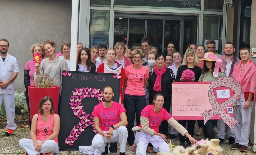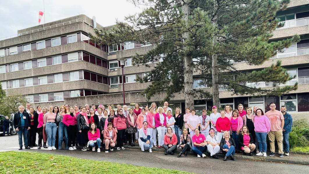 Dans le cadre de la campagne « Octobre rose » qui vise à sensibiliser le public à la lutte contre le cancer du sein, les agents des établissements de soin ont mis un t-shirt rose.