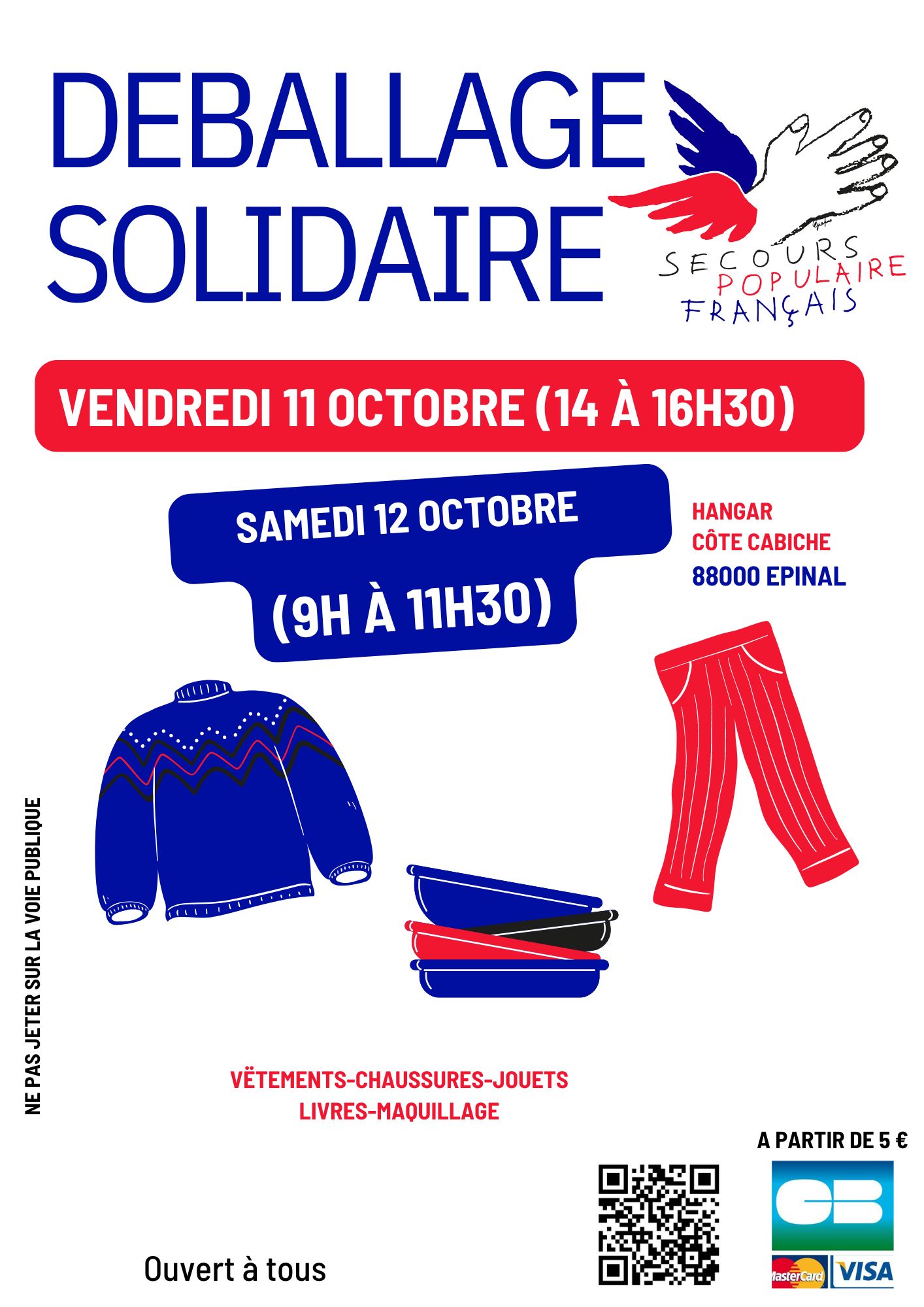 Cela se passe à Epinal dans les locaux, hangar du Secours populaire français, rue côte Cabiche : vendredi 11 octobre de 14 à 16h30 et samedi 12 octobre de 9 à 11h30,