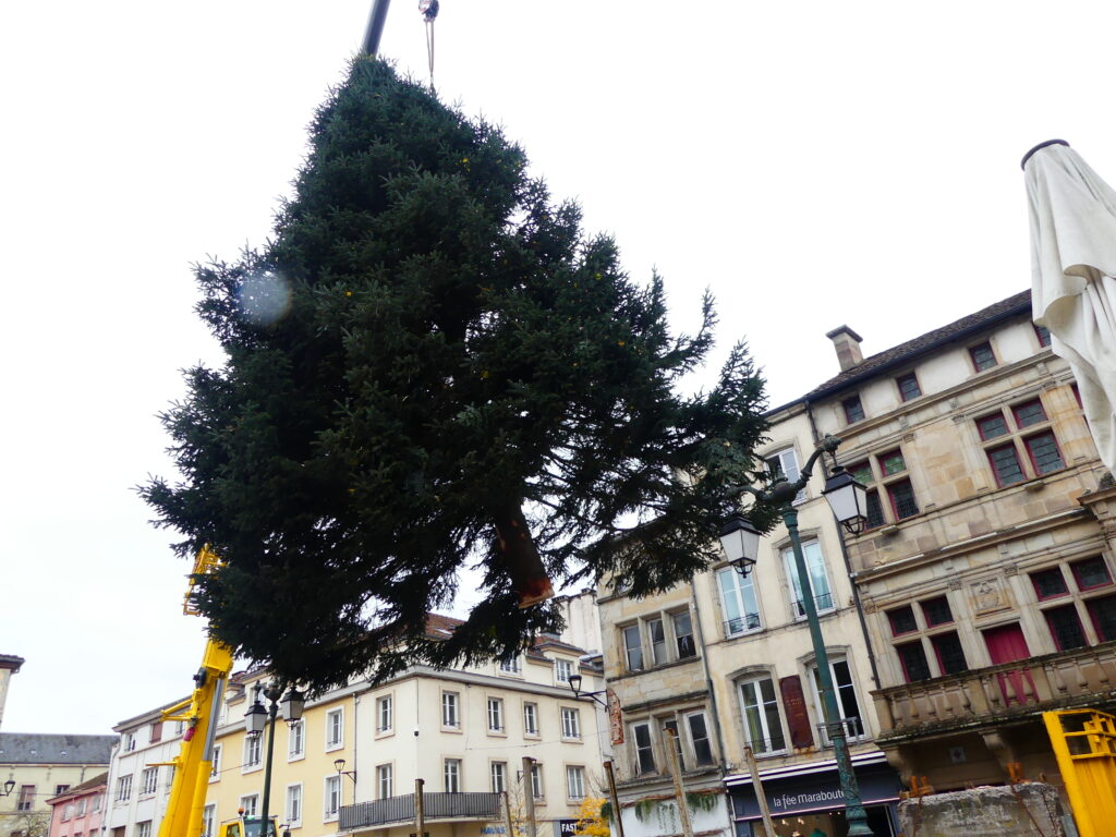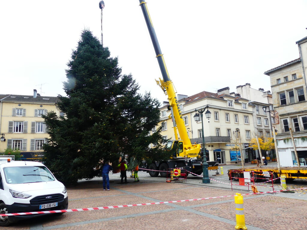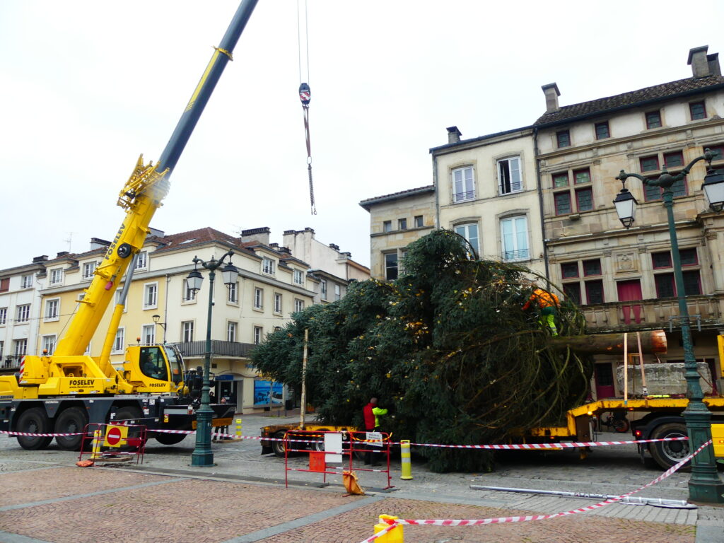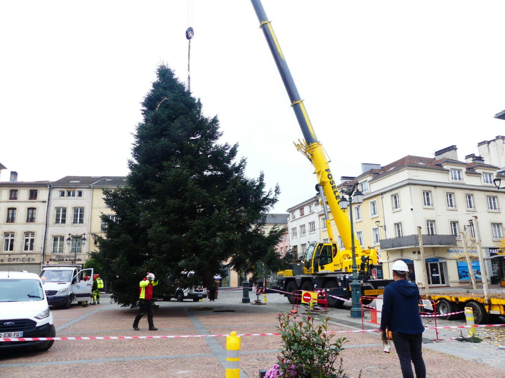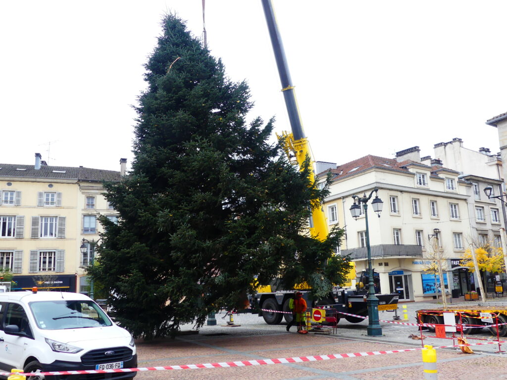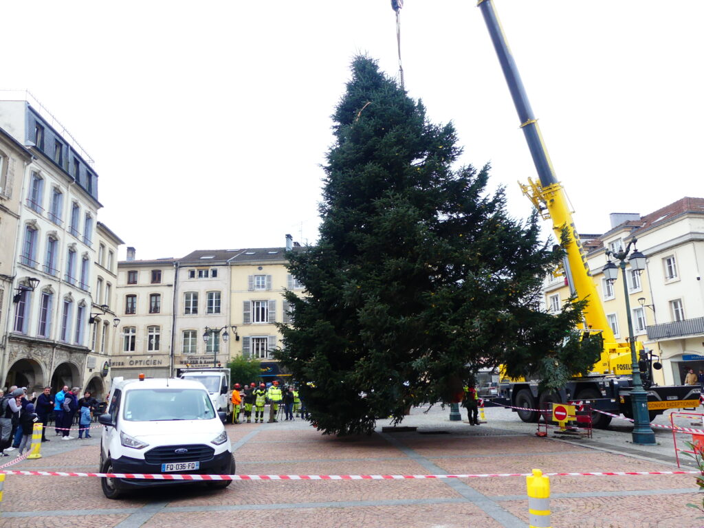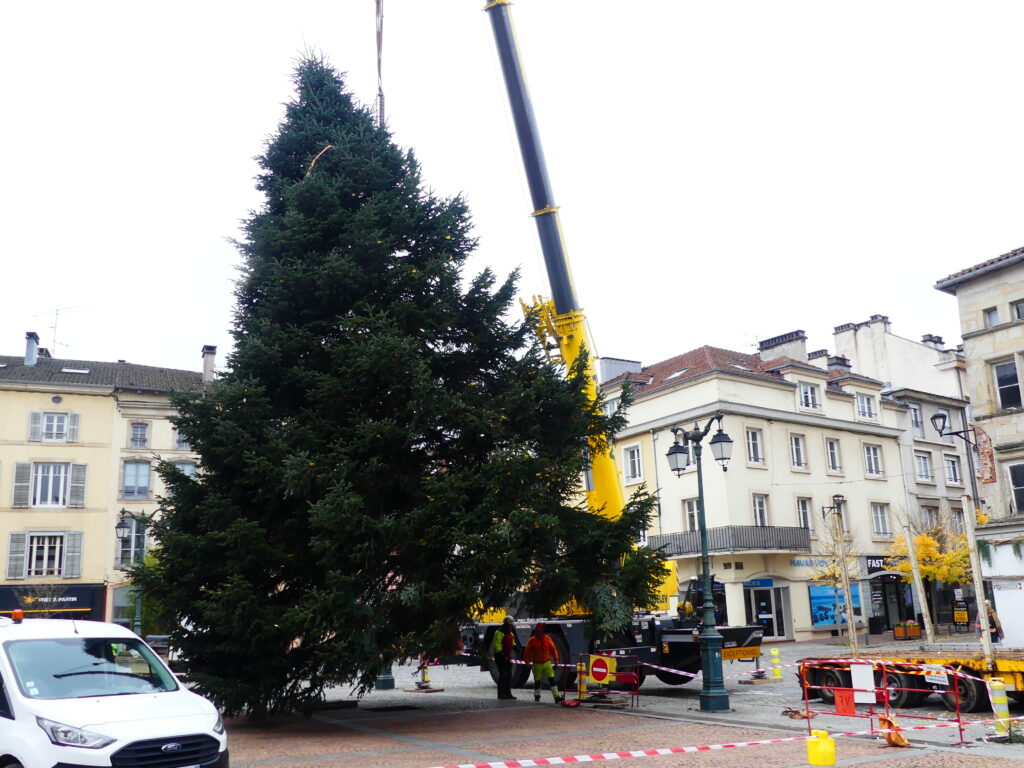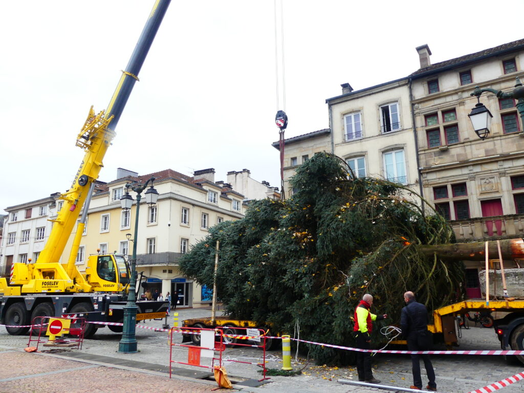 Le sapin de Noël d’Epinal a été installé place des Vosges, ce mercredi matin. Il fait 14 mètres de haut et pèse près de 4 tonnes.