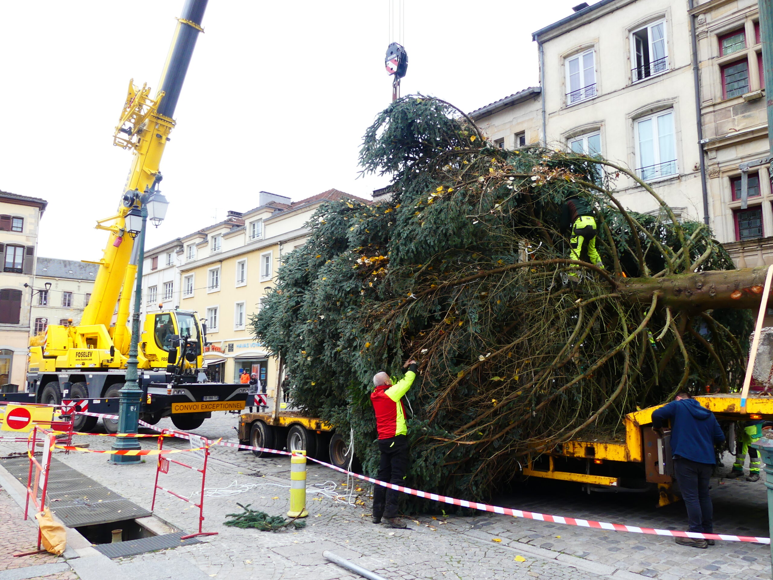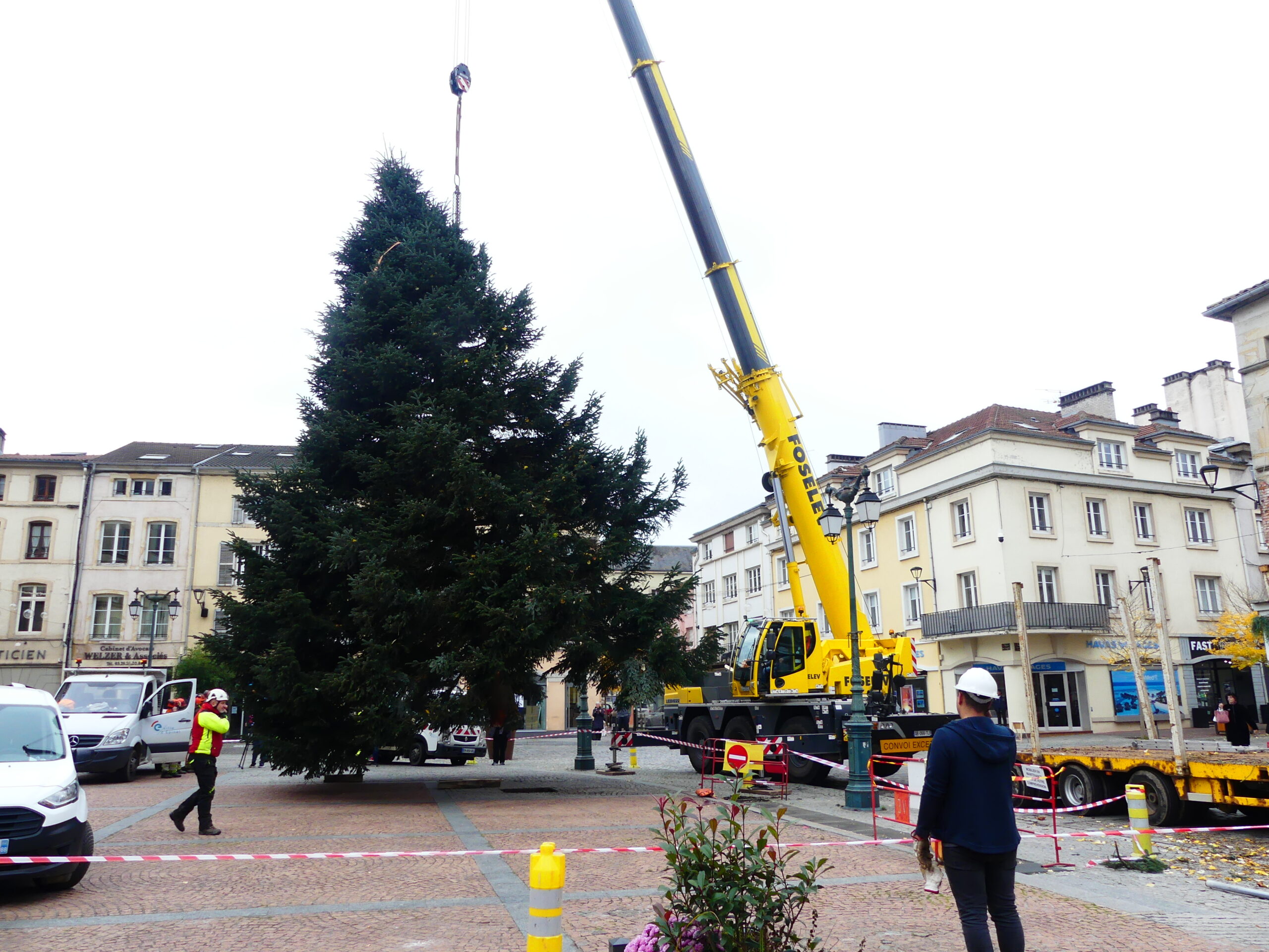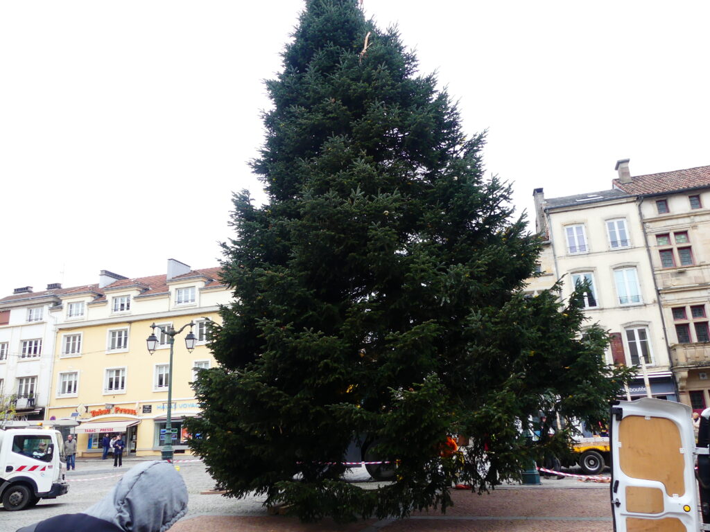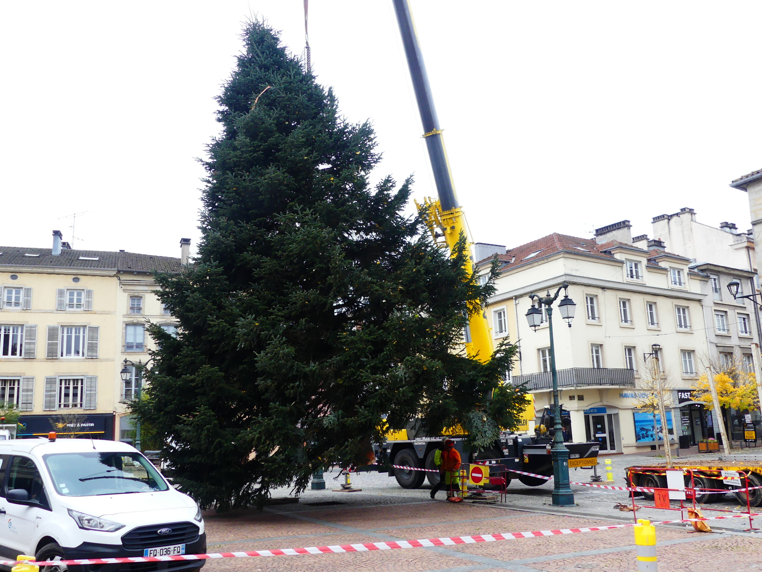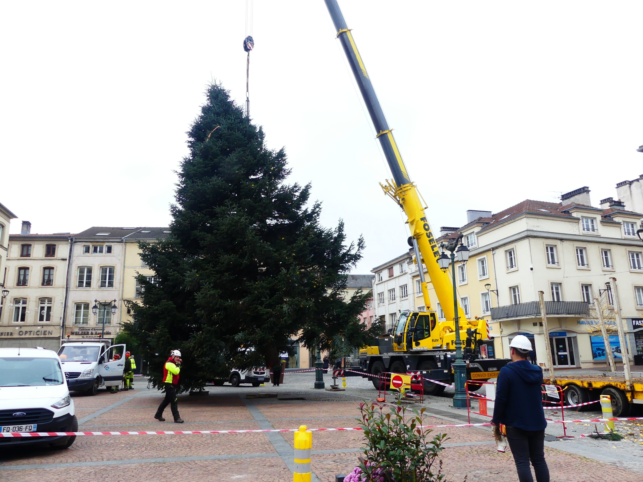 Le sapin de Noël d’Epinal a été installé place des Vosges, ce mercredi matin. Il fait 14 mètres de haut et pèse près de 4 tonnes.