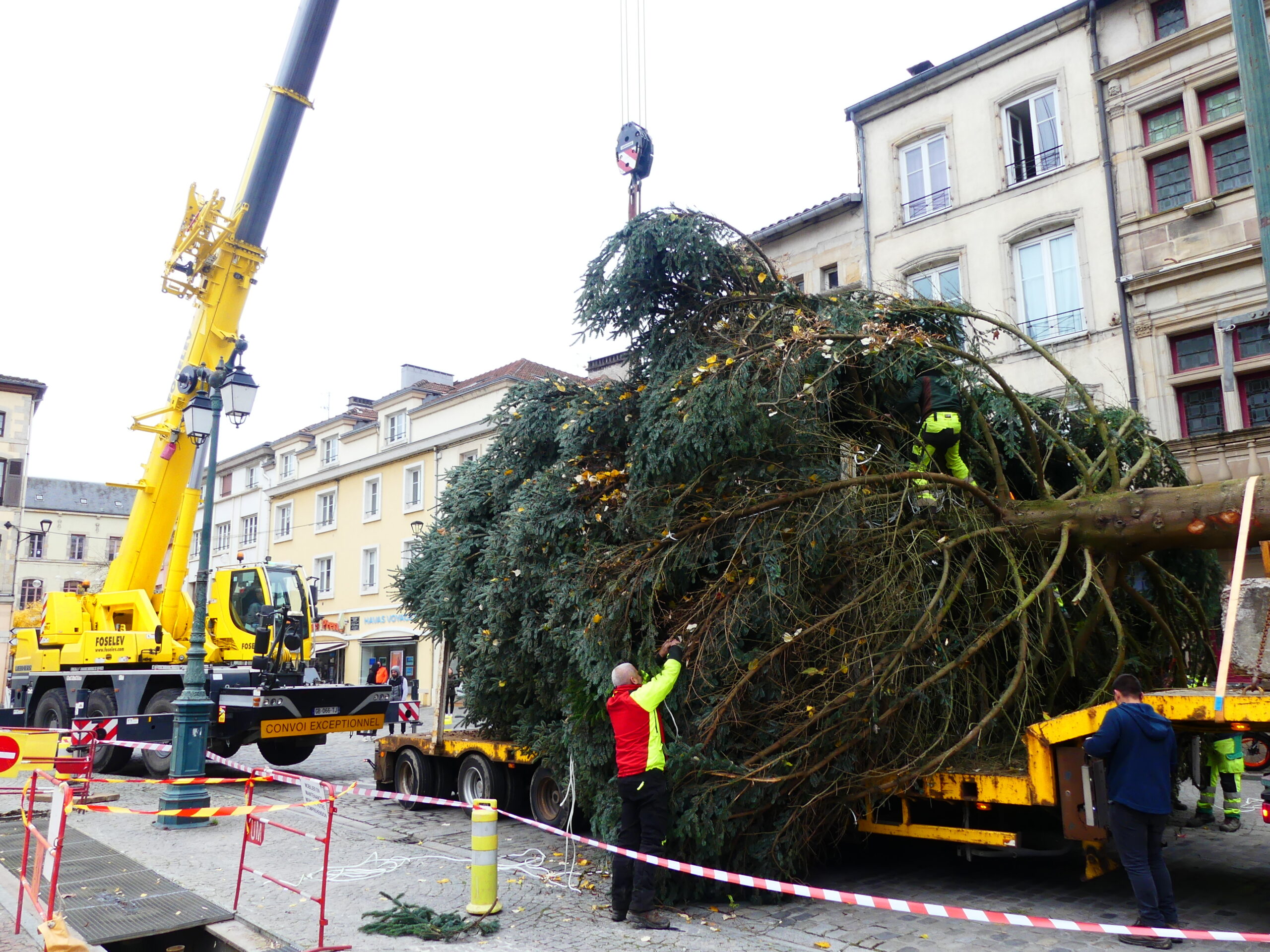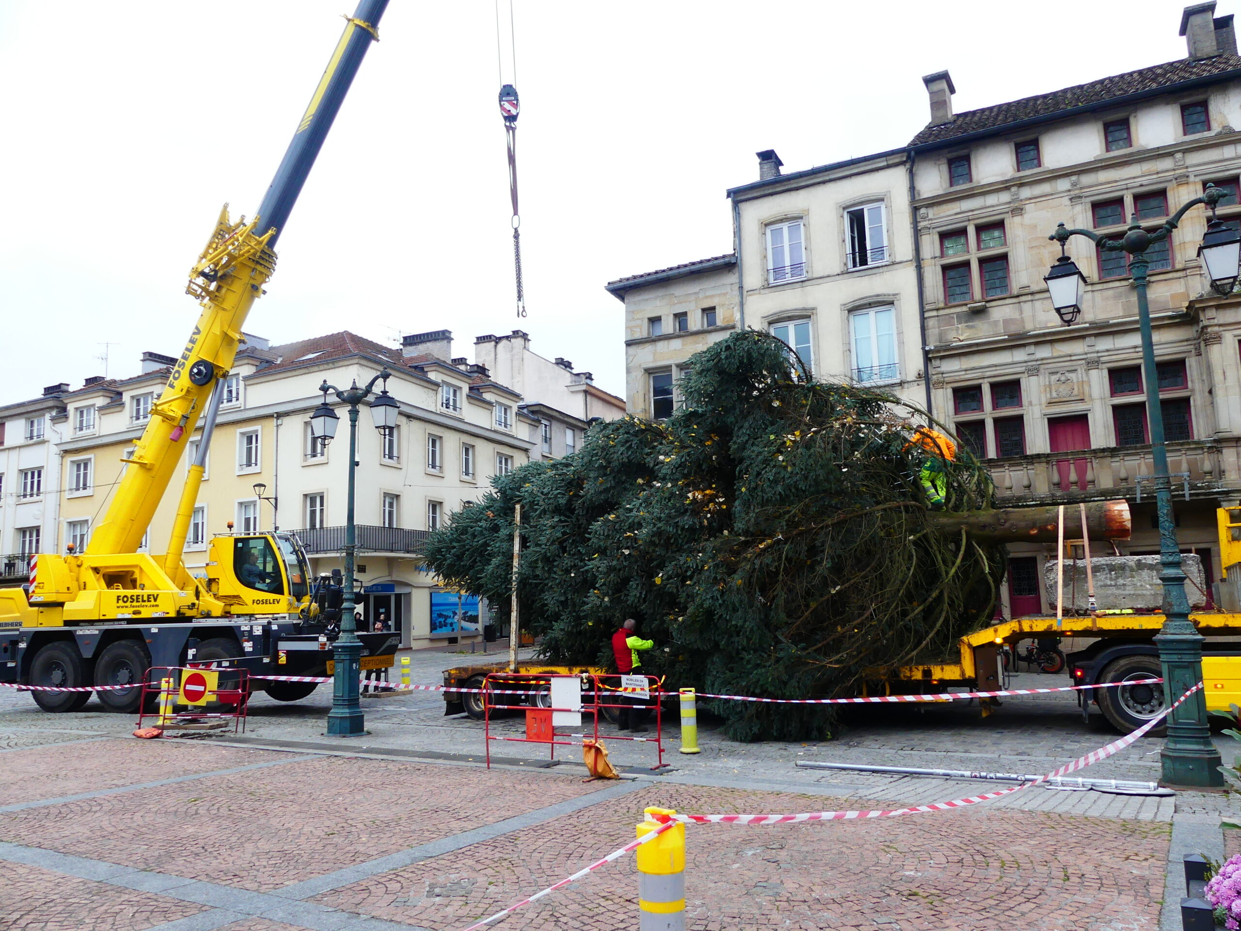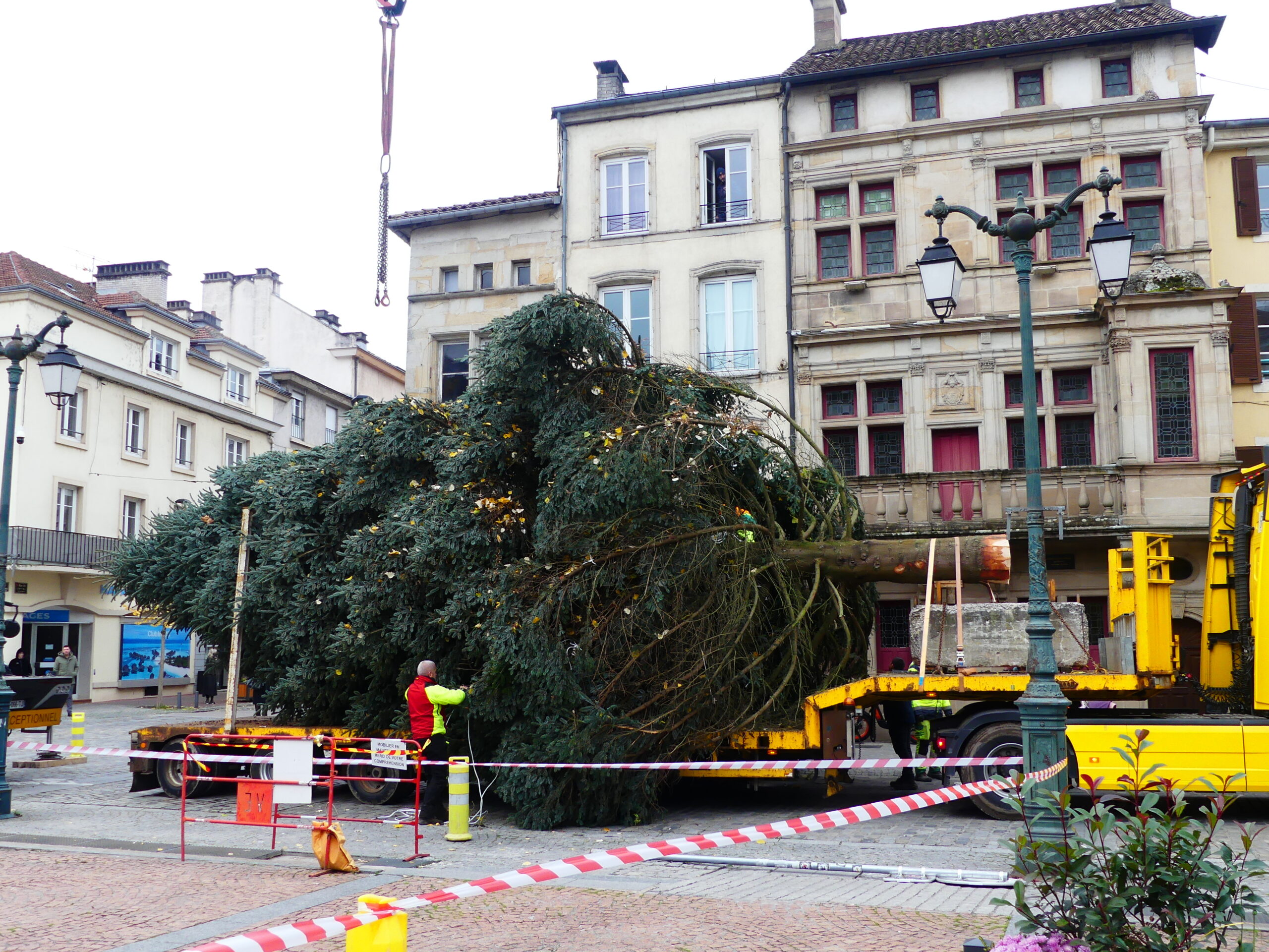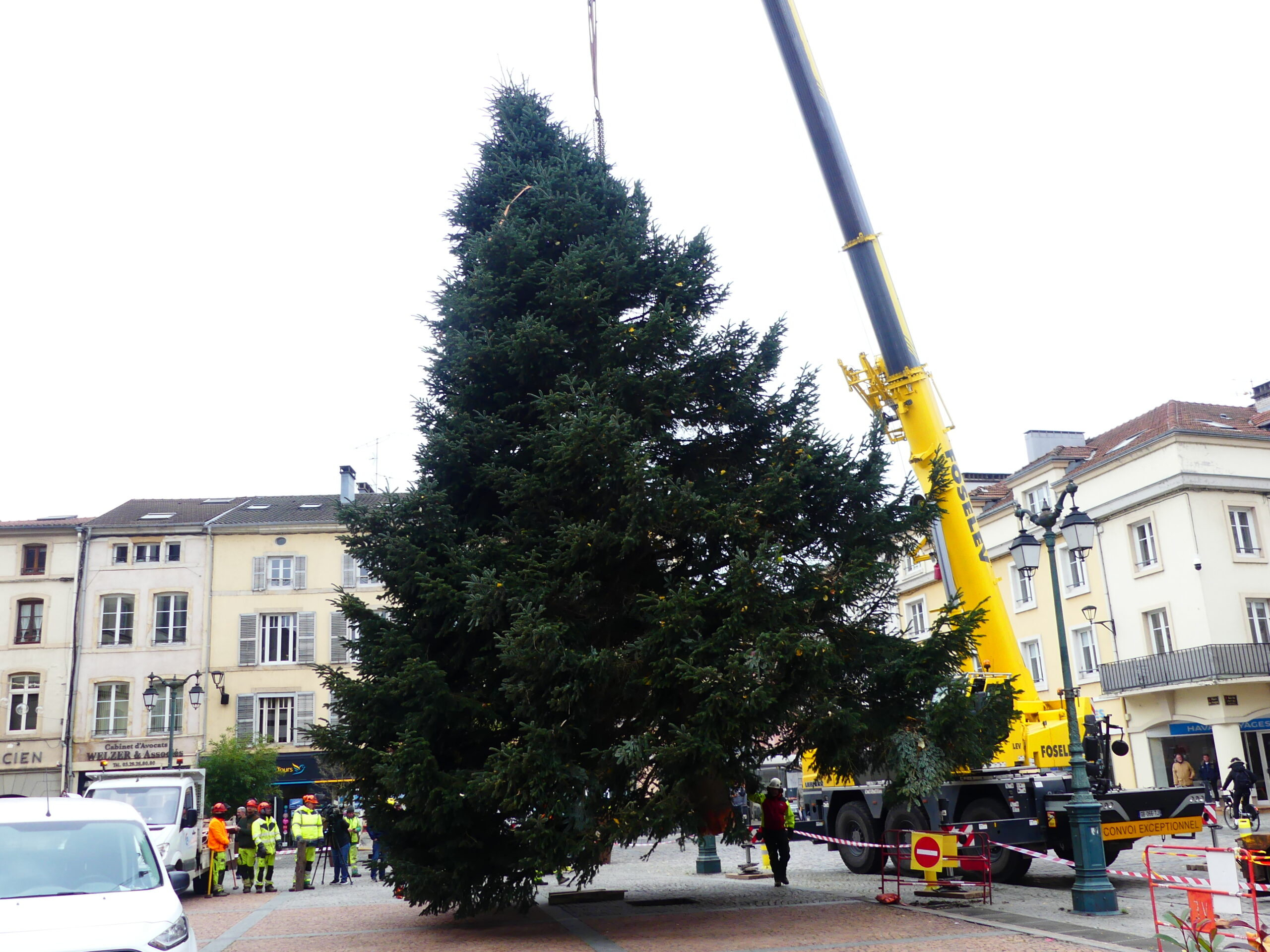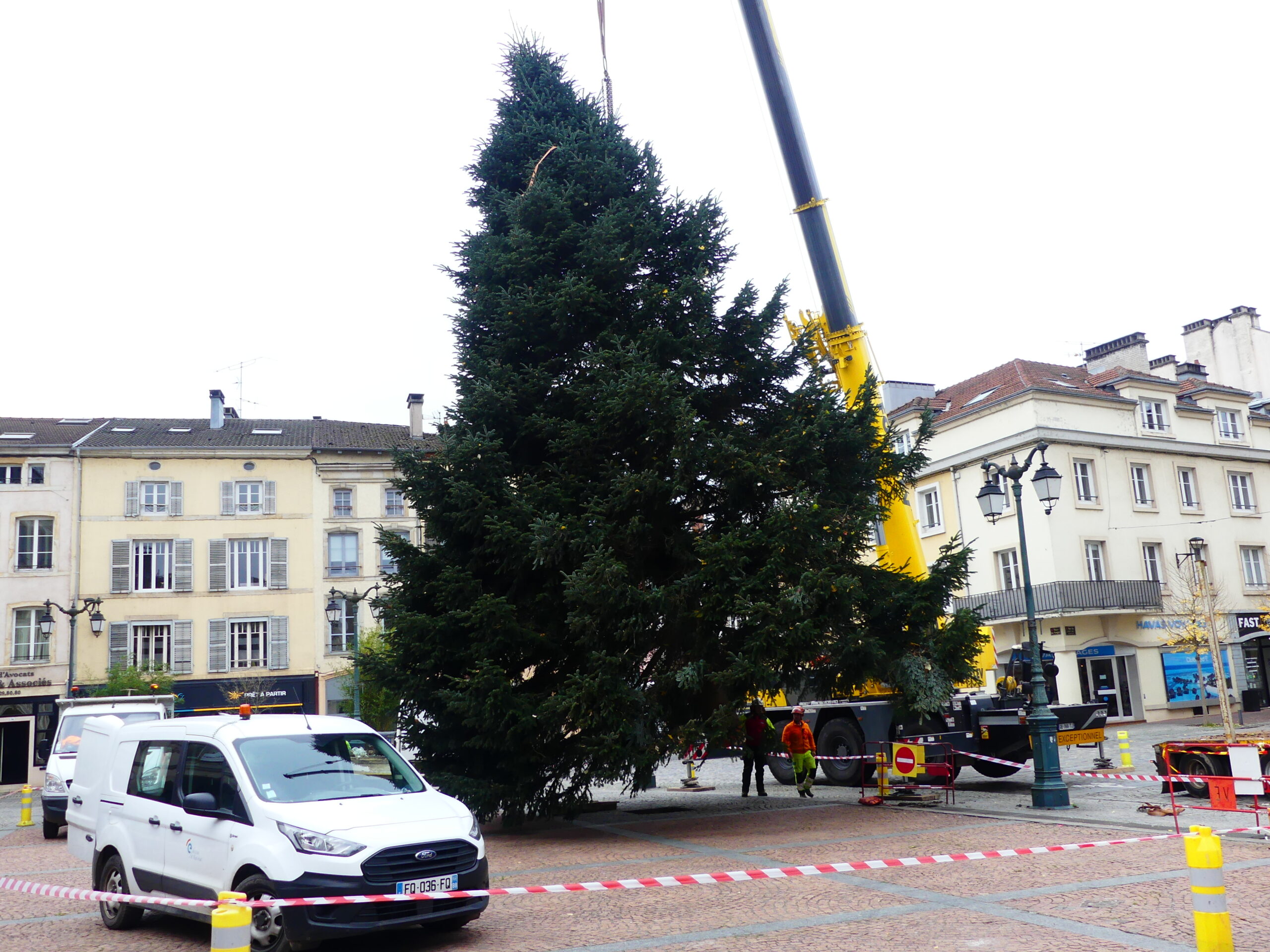 Le sapin de Noël d’Epinal a été installé place des Vosges, ce mercredi matin. Il fait 14 mètres de haut et pèse près de 4 tonnes.