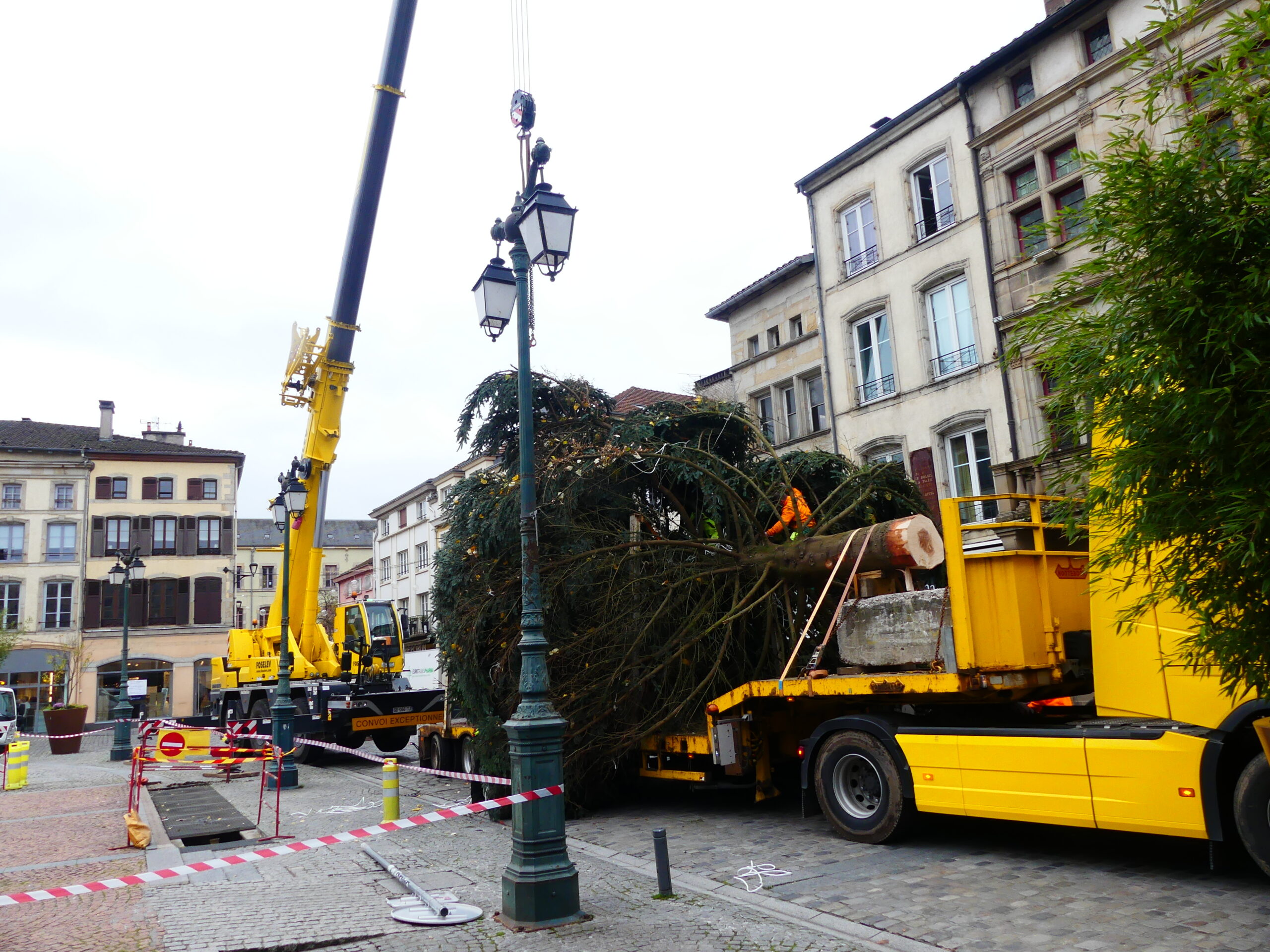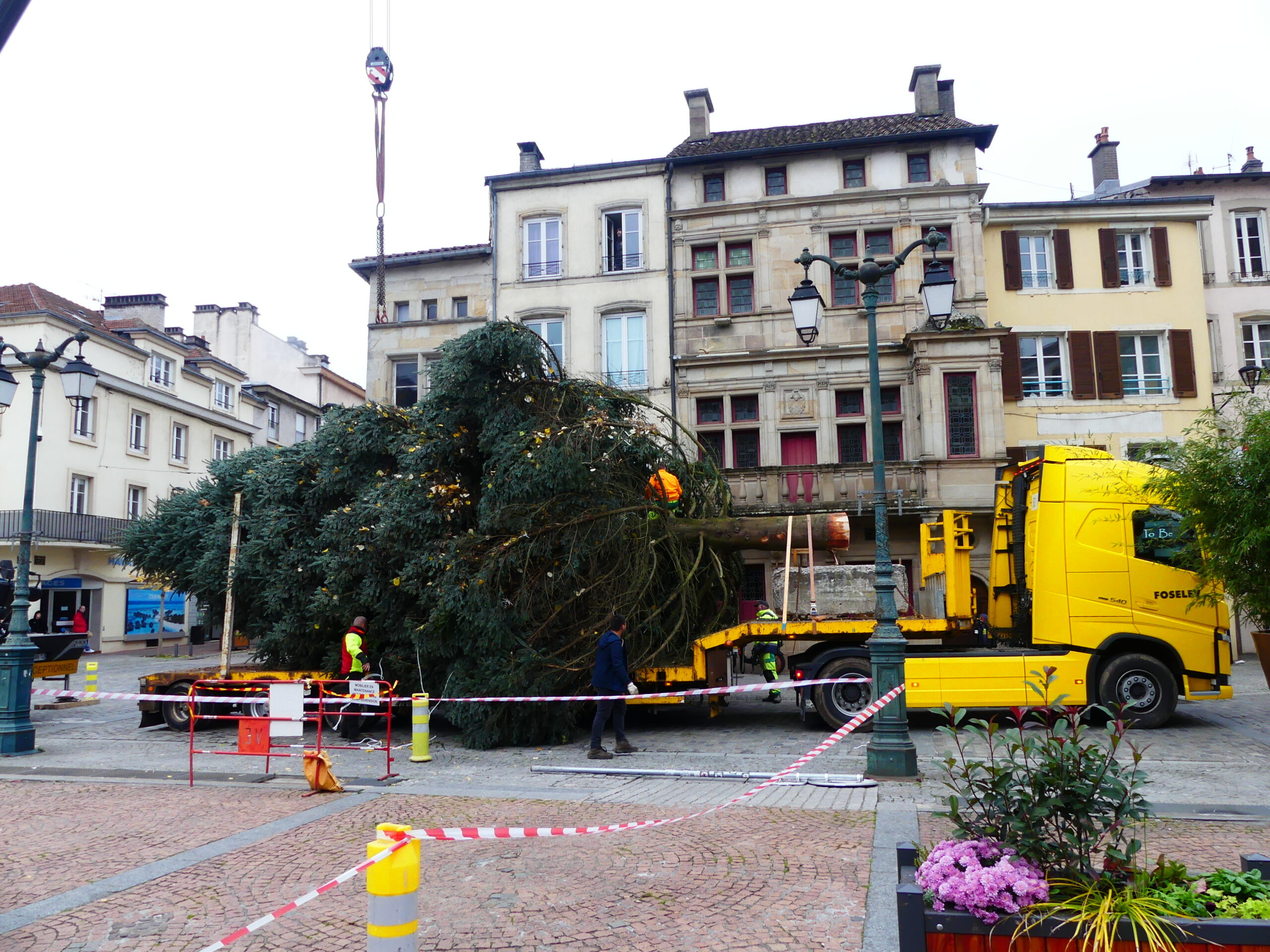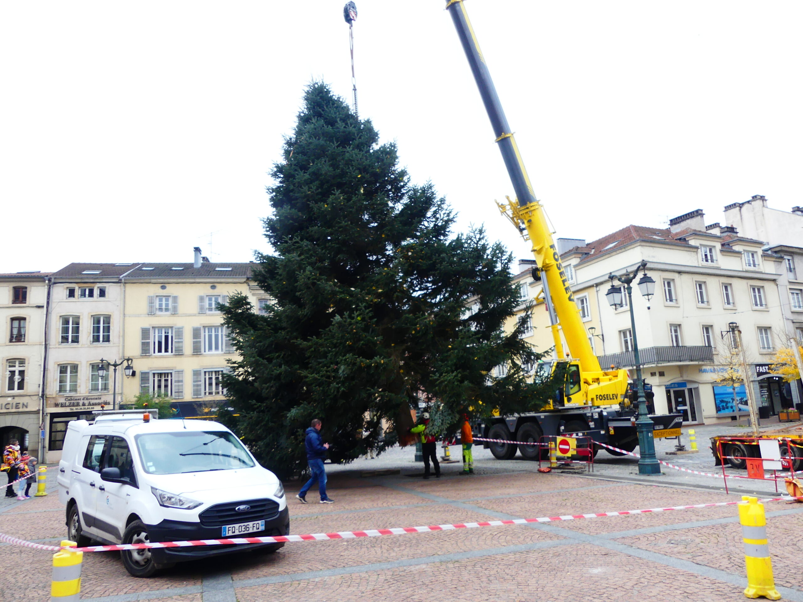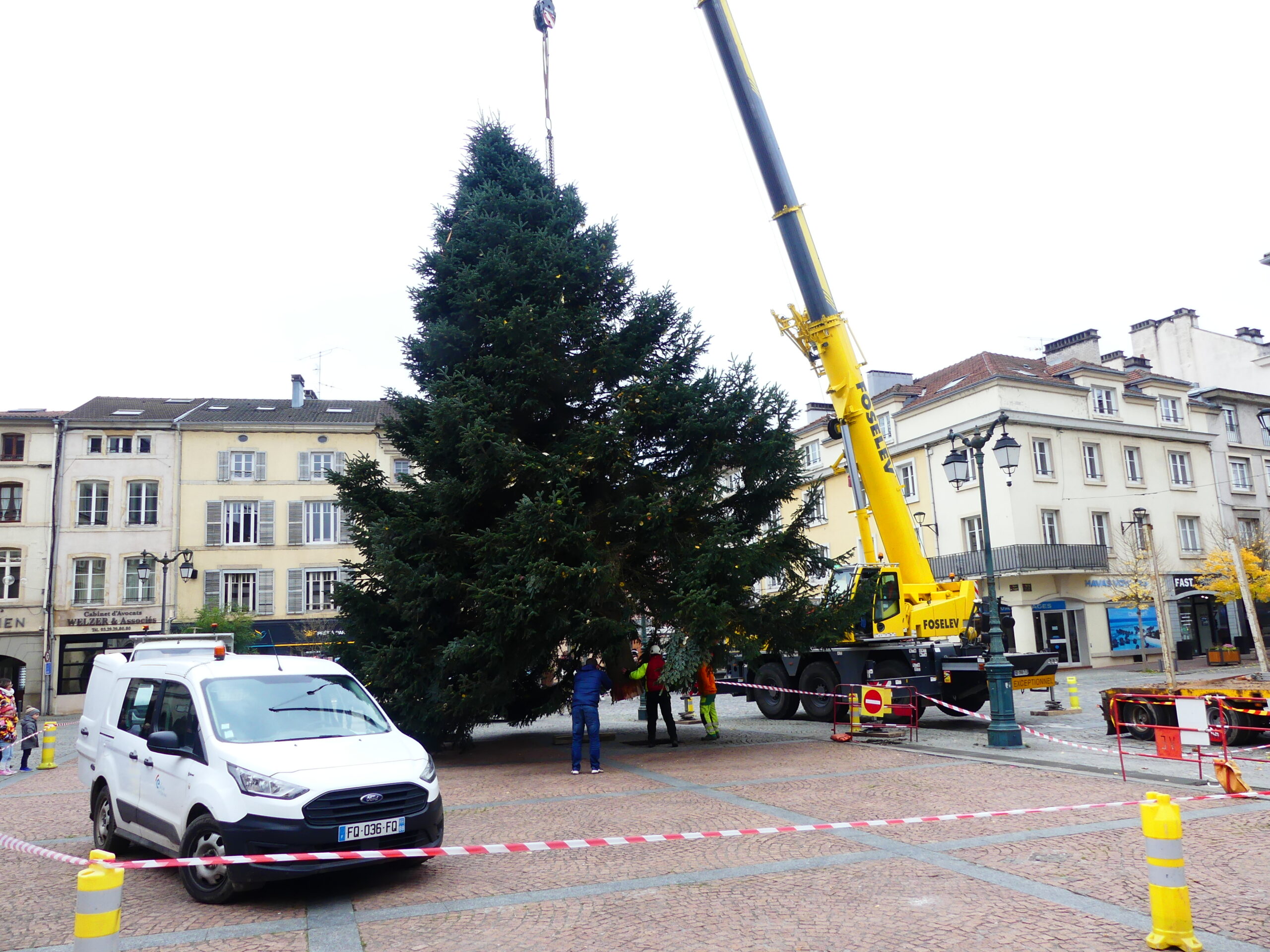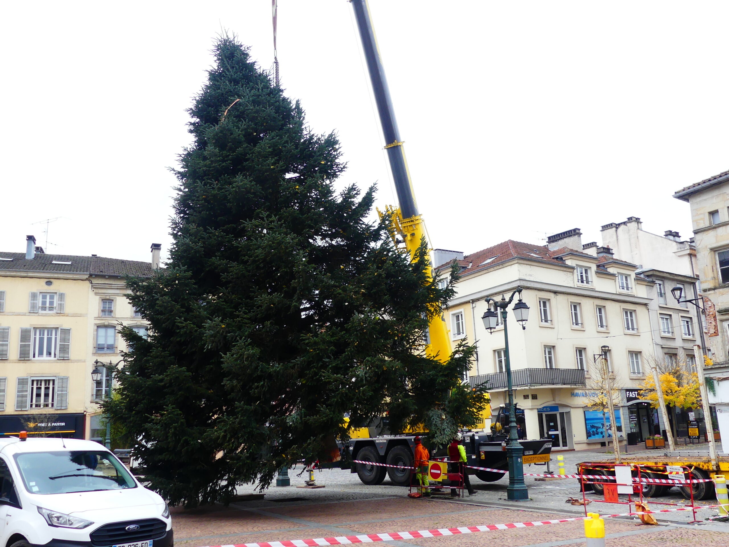 Le sapin de Noël d’Epinal a été installé place des Vosges, ce mercredi matin. Il fait 14 mètres de haut et pèse près de 4 tonnes.