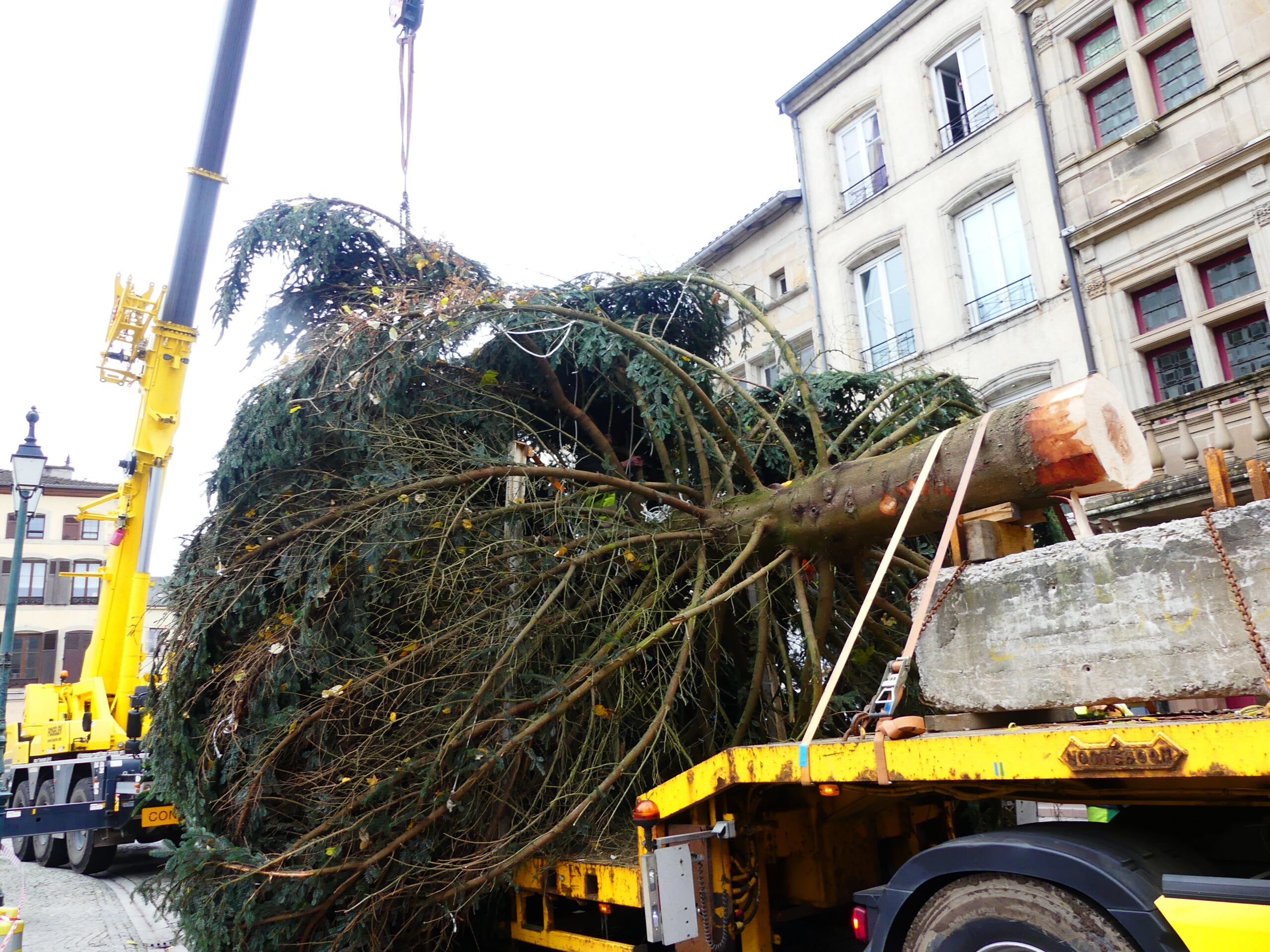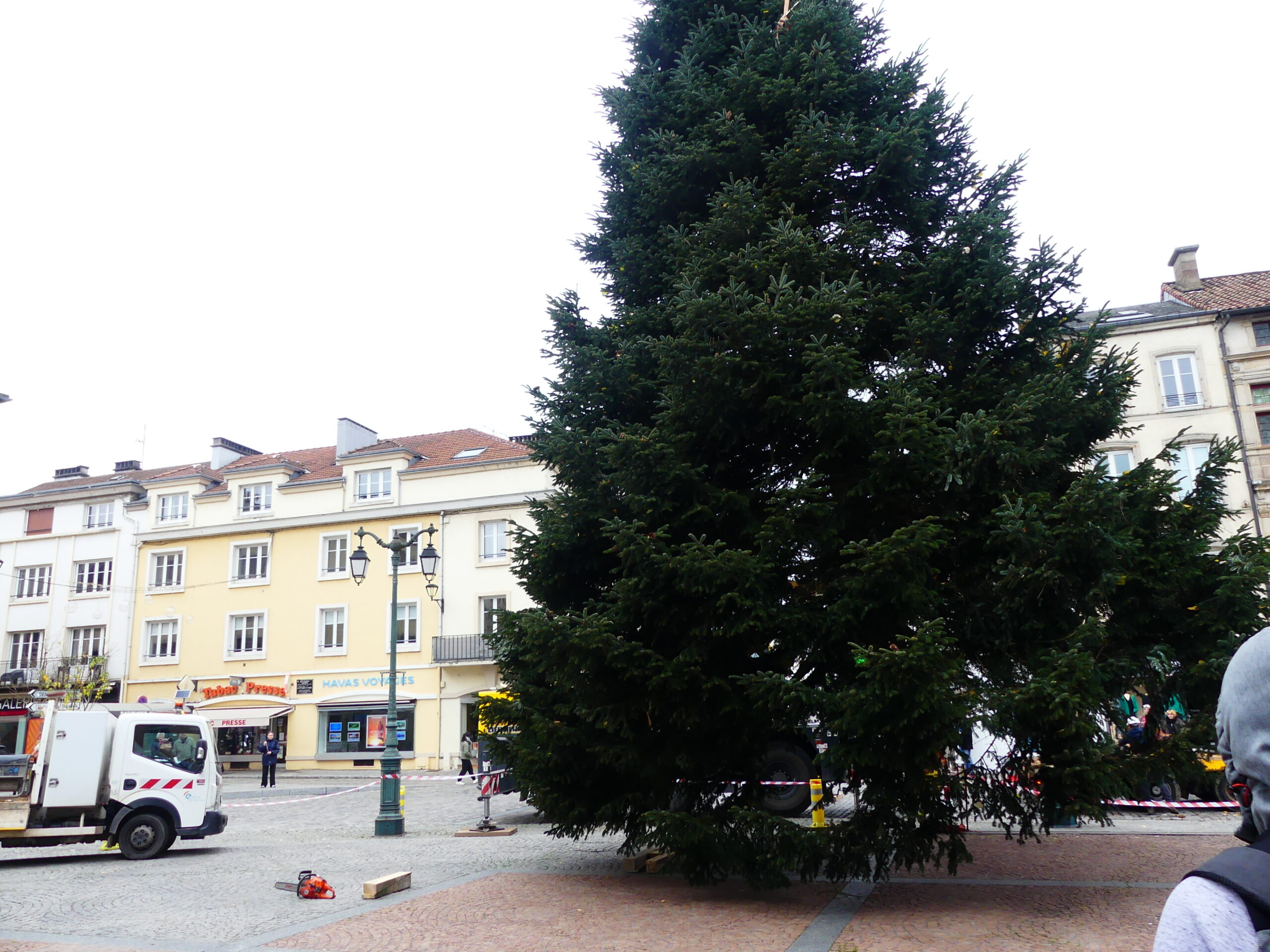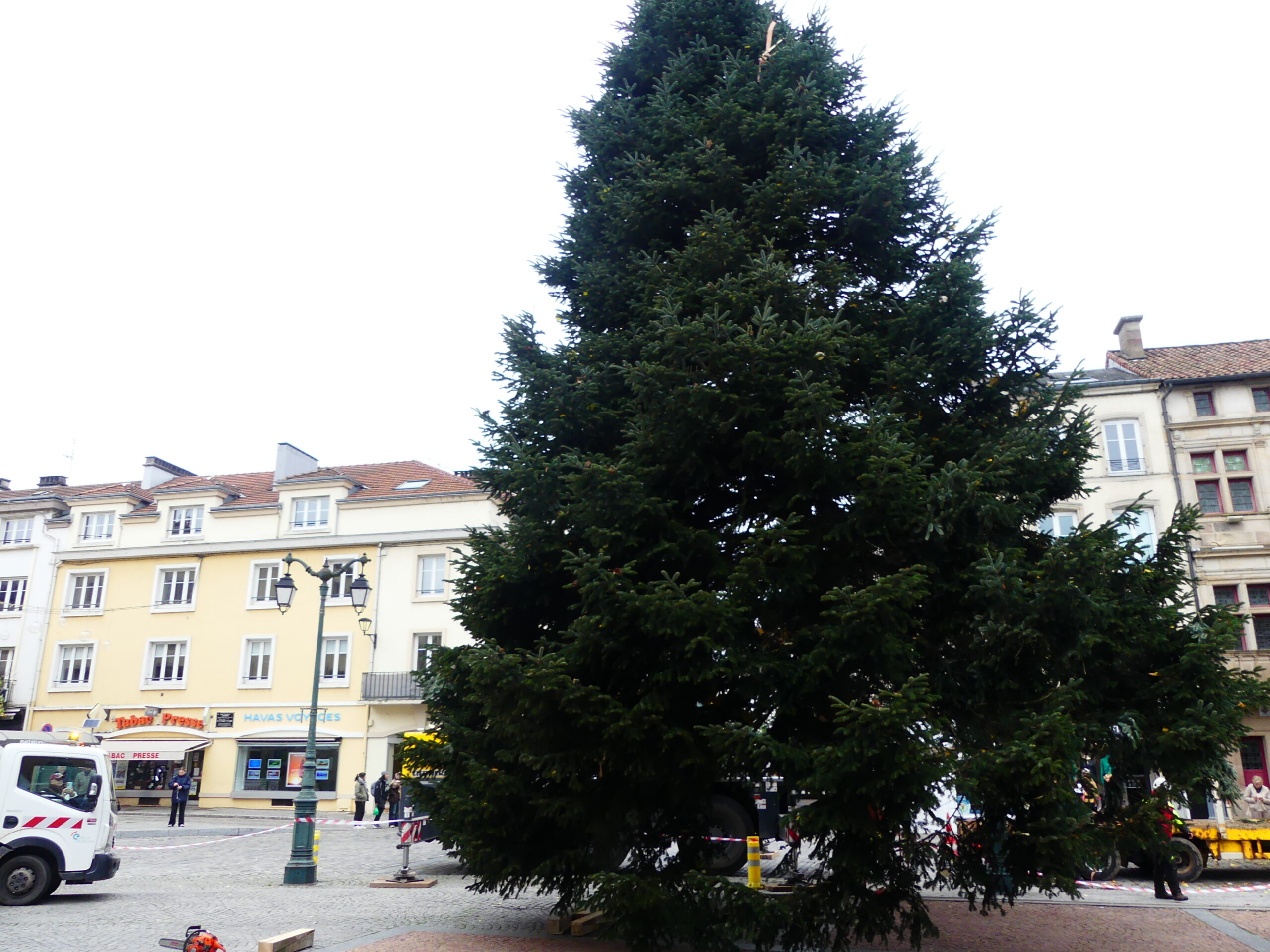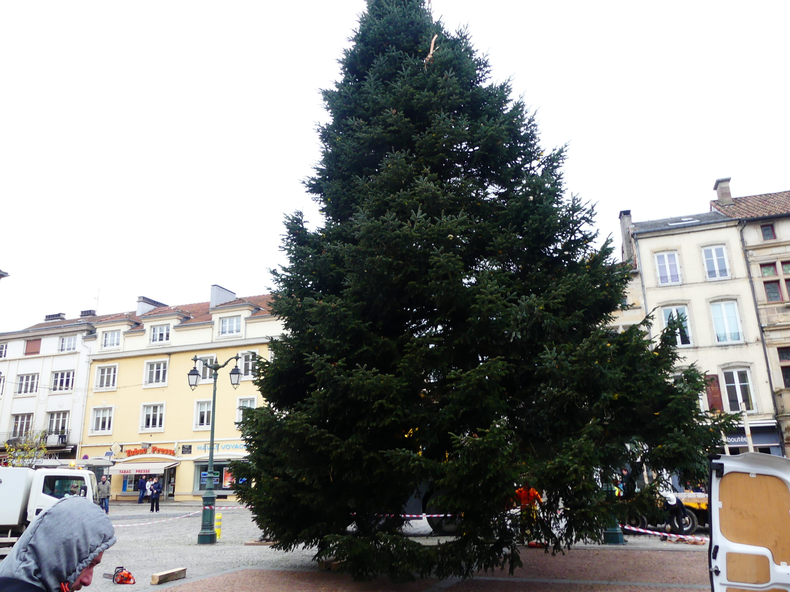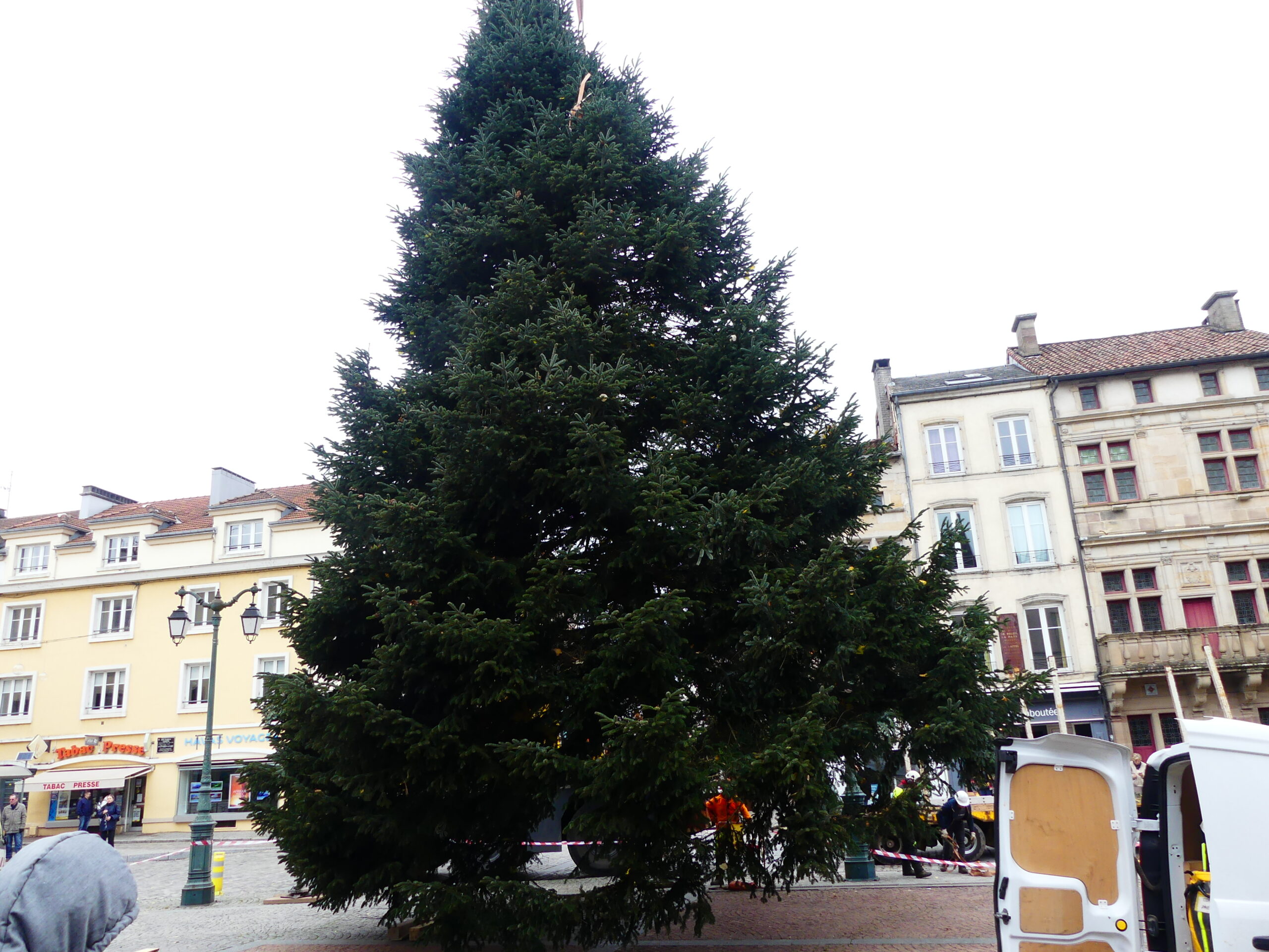Le sapin de Noël d’Epinal a été installé place des Vosges, ce mercredi matin. Il fait 14 mètres de haut et pèse près de 4 tonnes.