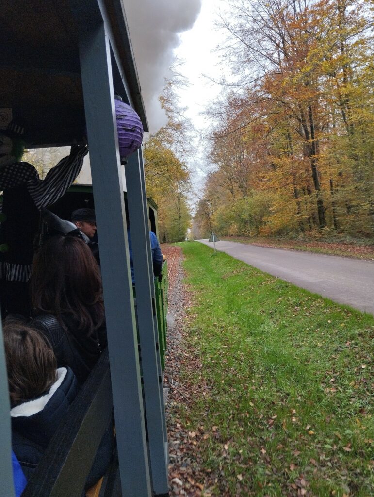 Le train est entièrement décoré aux couleurs d’Halloween et toutes les personnes déguisées peuvent prendre le train gratuitement. Le train des forts relie le fort d’Uxegney au fort de Bois-L’Abbé. Il s’agit d’une véritable locomotive à vapeur de 1916 remise sur les rails par une équipe de passionnés.