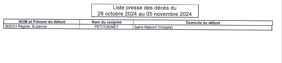 Deprecated: Calling get_class() without arguments is deprecated in /project/VIDEV/web/wp/wp-includes/class-wp-http.php on line 329 Les décès du 28 octobre au 5 novembre - Epinal Info