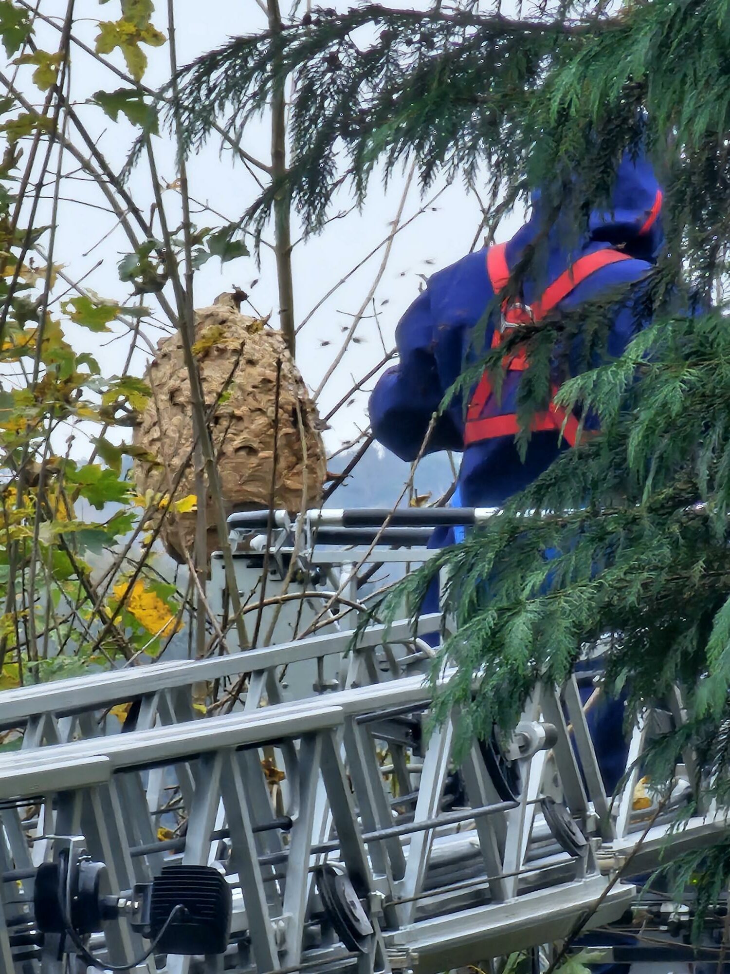 « Les sapeurs-pompiers sont intervenus sur place avec une grande échelle pour le traiter et le retirer car même encore a cette période, il y a encore beaucoup de monde dans les nids. » poursuit Julien Vetter. « C’est très dangereux car les nids étaient seulement à 3 ou 4 mètres du sol. » poursuit-il.