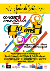 Cette année, Splenda Voce fête ses dix ans d’existence et vous invite à des concerts anniversaire qui lui tiennent à cœur.