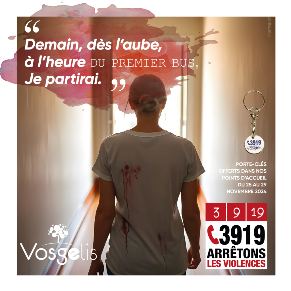 Le 25 novembre, c’est la Journée internationale de lutte contre les violences faites aux femmes. A cette occasion, vous pourrez récupérer dans les 5 agences de Vosgelis, du 25 au 29 novembre, un porte-clé marqué au « 3919 ».