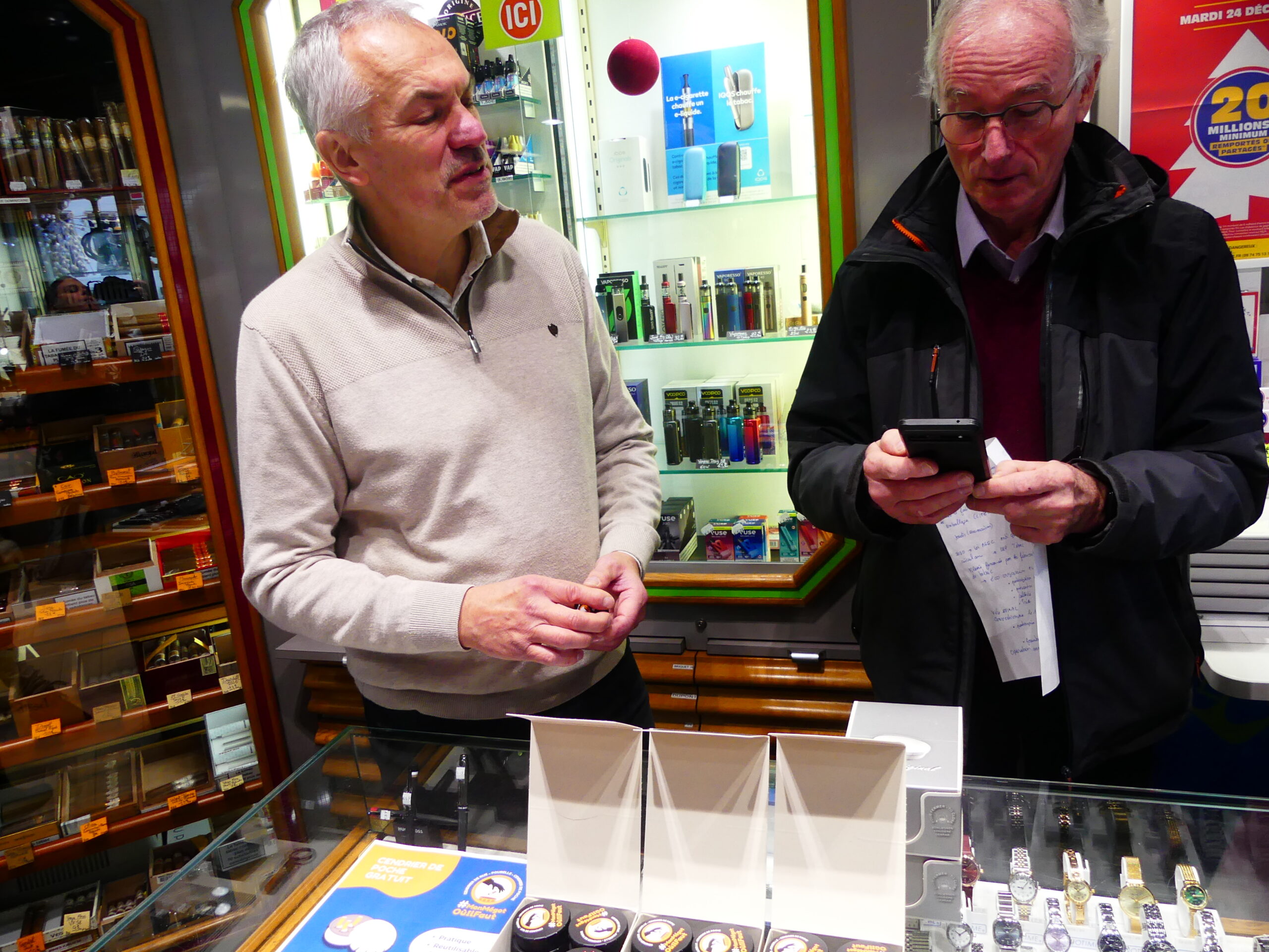 Philippe Thiriet, le gérant du bureau de tabac spinalien le Khédive a reçu plusieurs boîtes de cendriers. « On va le distribuer gratuitement aux clients qui achètent des cigarettes. C’est une très bonne chose. Souvent les fumeurs ne trouvent pas de poubelle à proximité et ils n’osent pas mettre leur cigarette dans une poubelle pour les papiers, de peur qu’elle prenne feu. » explique-t-il.