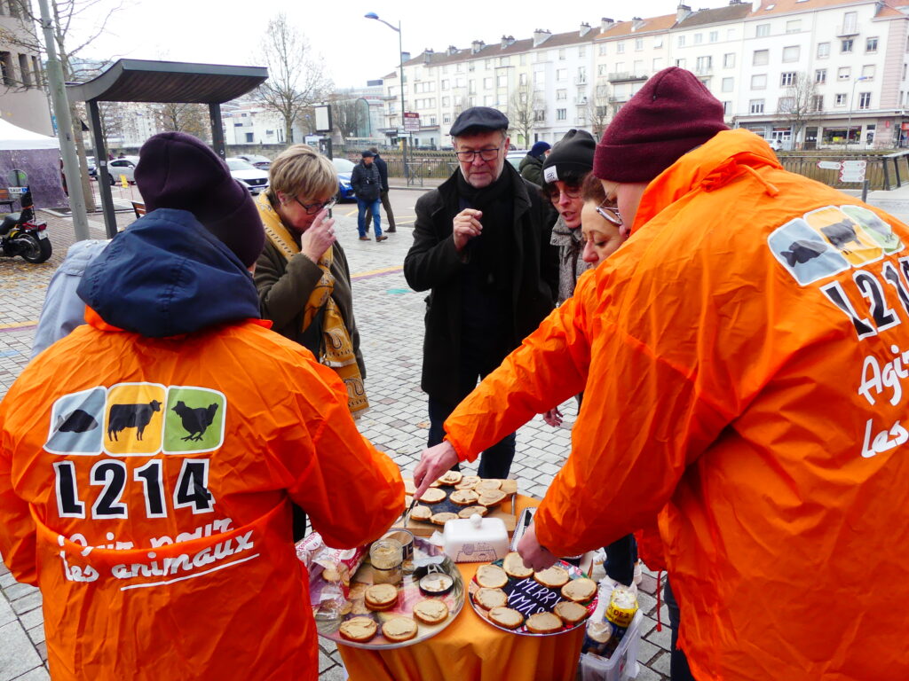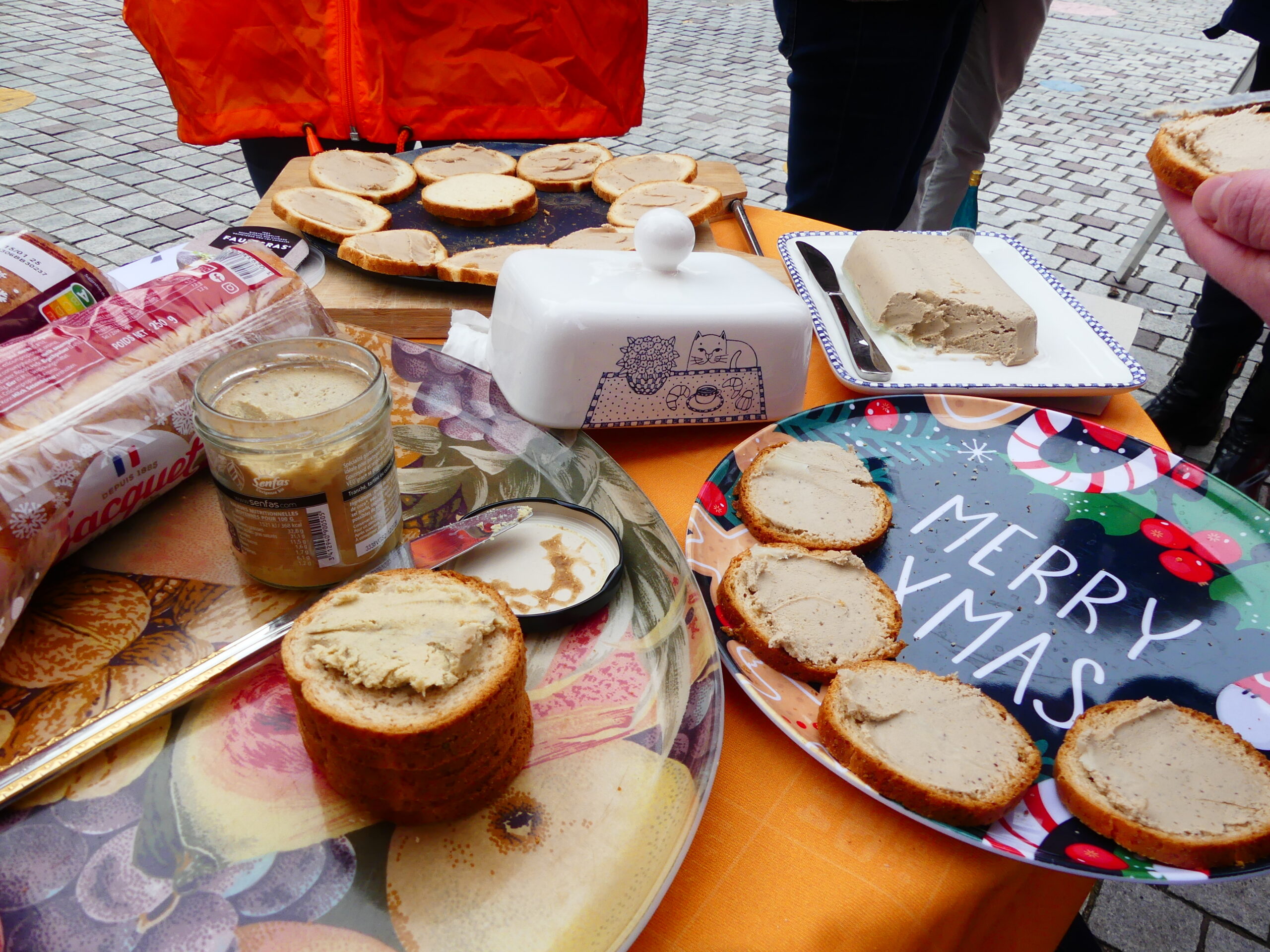 Pour tenter de faire évoluer les mentalités, les militants proposaient aux passants de déguster du « foie gras » végétal, à base de noix de cajou, d’épices et d’huile de coco. « Il est un peu moins cher que la version originale » expliquent les militants de l’association. Le résultat est bluffant !