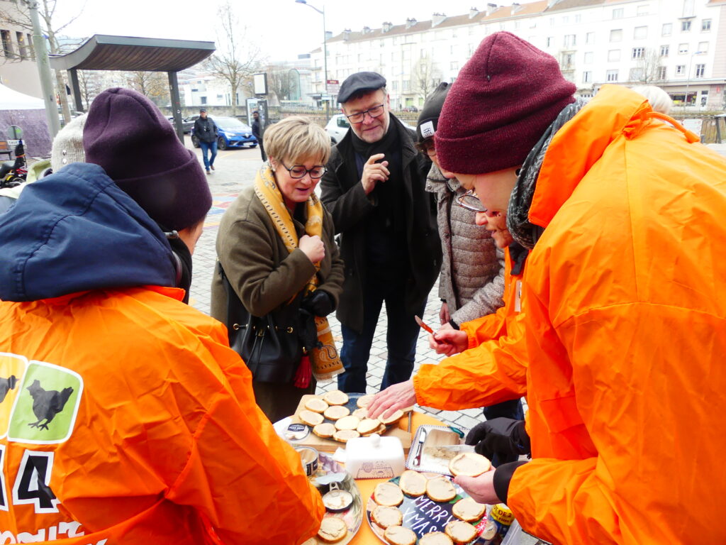 15 villes se sont déjà prononcées contre le foie gras en déclarant ne plus en servir lors des événements municipaux, telles que Strasbourg, Besançon ou encore très récemment Clermont-Ferrand. « A Epinal, Saint-Dié-des-Vosges et Nancy, les mairies servent encore du foie gras. C’est inadmissible » poursuit Camille Martins. Via un QR Code, les passants peuvent envoyer un mail à la mairie pour demander au maire de ne plus en servir.