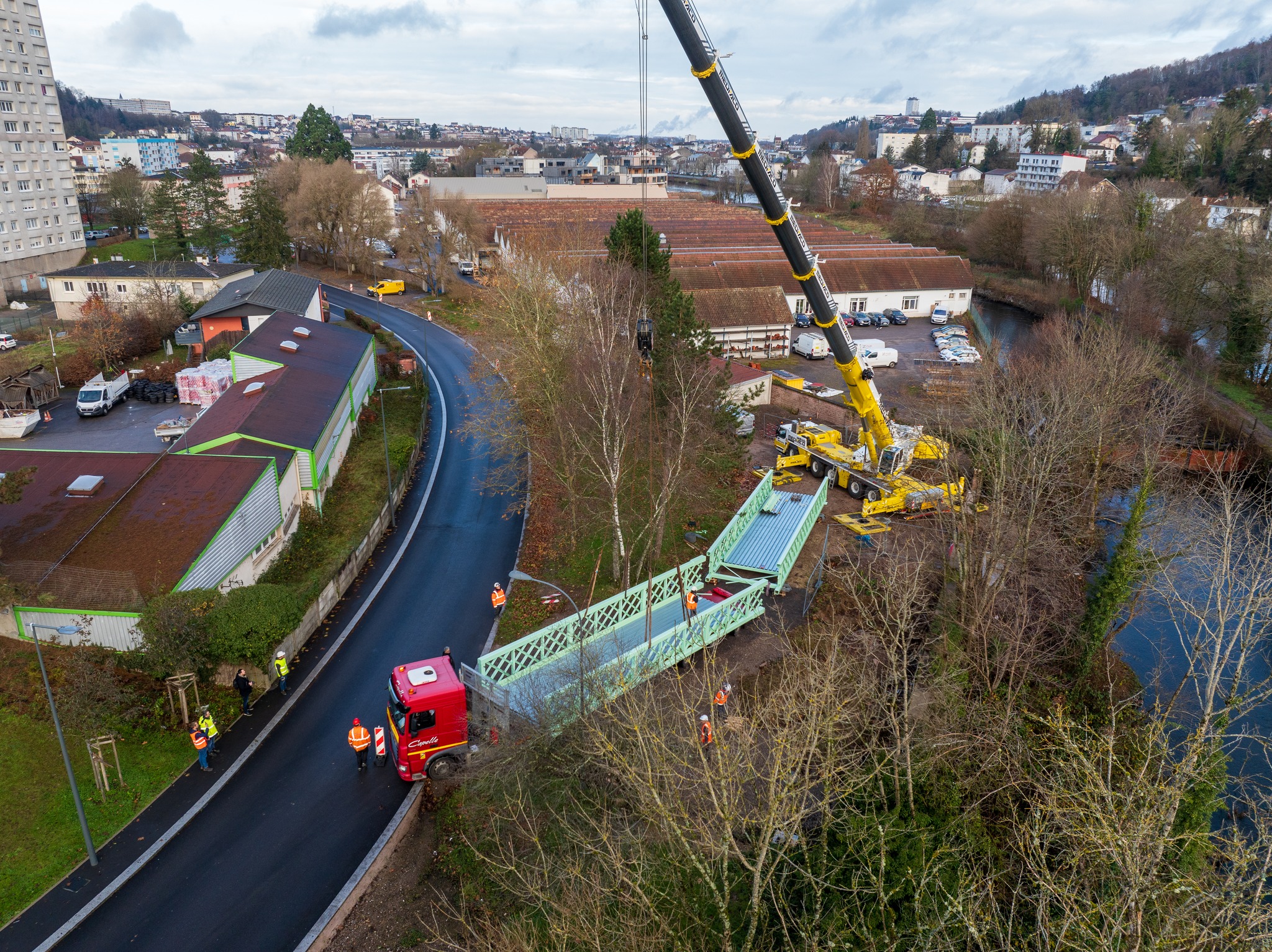 Une nouvelle passerelle a été installée au niveau de l’île du Champ-du-Pin, à Epinal. Elle a été réalisée par l’entreprise Framatec de Dinozé.