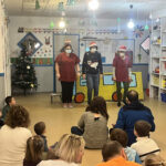 Une quinzaine de familles étaient présentes pour ce bel événement. Le spectacle, rythmé par des musiques enfantines familières aux enfants, a ravi les petits spectateurs qui ont pu reconnaître et chanter les airs appris au cours de l’année.