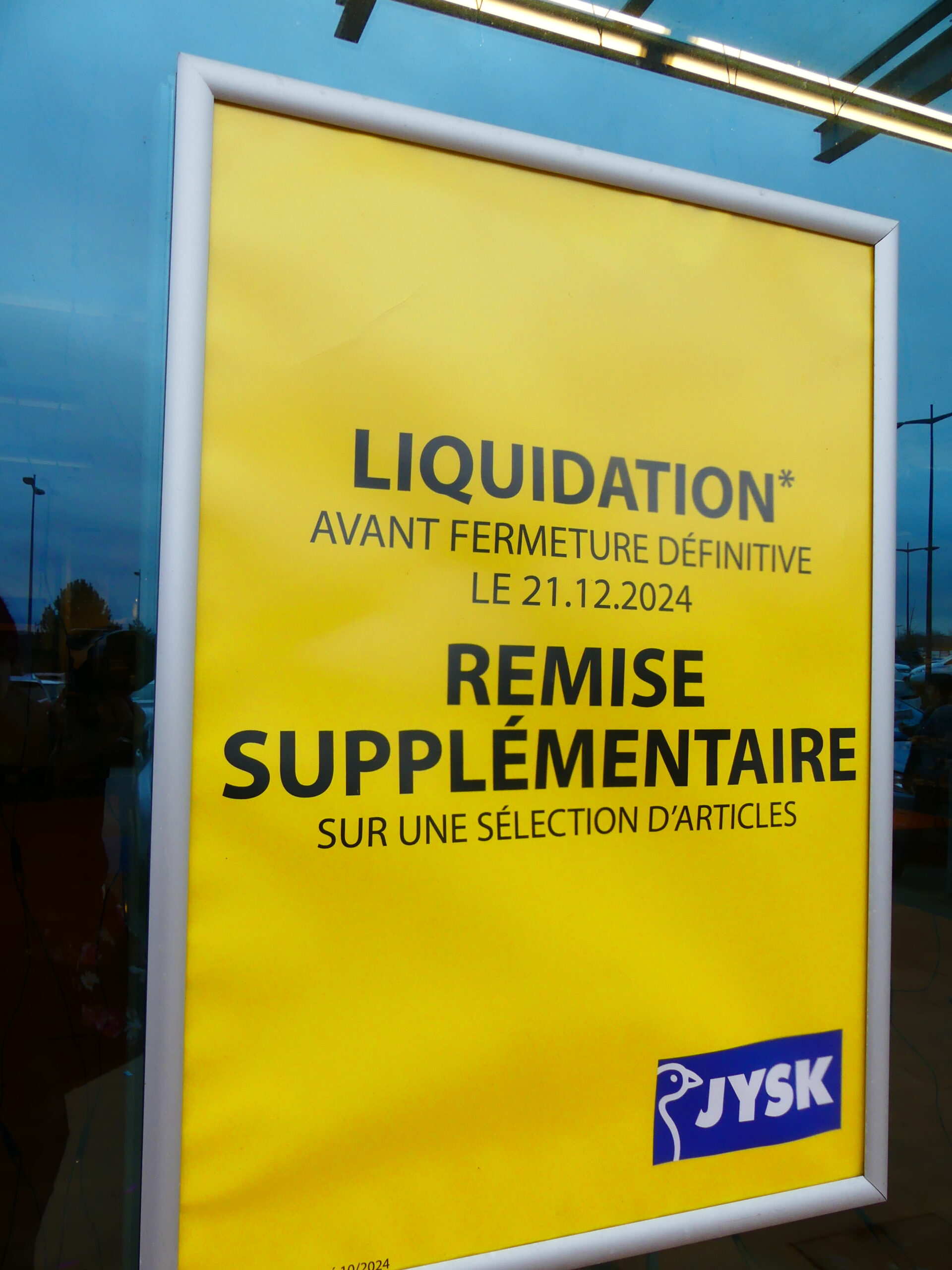 Situé sur la zone des Terres Saint Jean à Epinal, le magasin de meubles, décorations et literies Jysk fermera définitivement ses portes le 21 décembre prochain. Le magasin est actuellement en liquidation totale avant fermeture.
