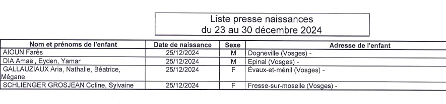 Deprecated: Use of "parent" in callables is deprecated in /project/VIDEV/web/app/plugins/simple-lightbox/includes/class.options.php on line 501 Les naissances du 23 au 30 décembre 2024 - Epinal Info