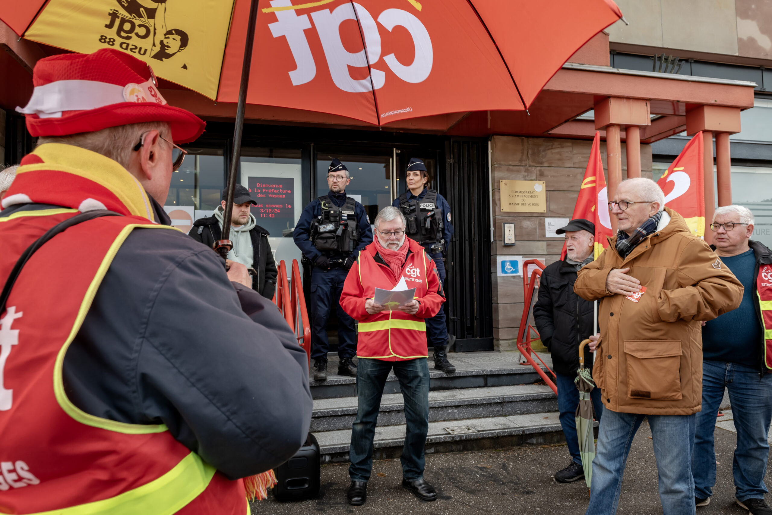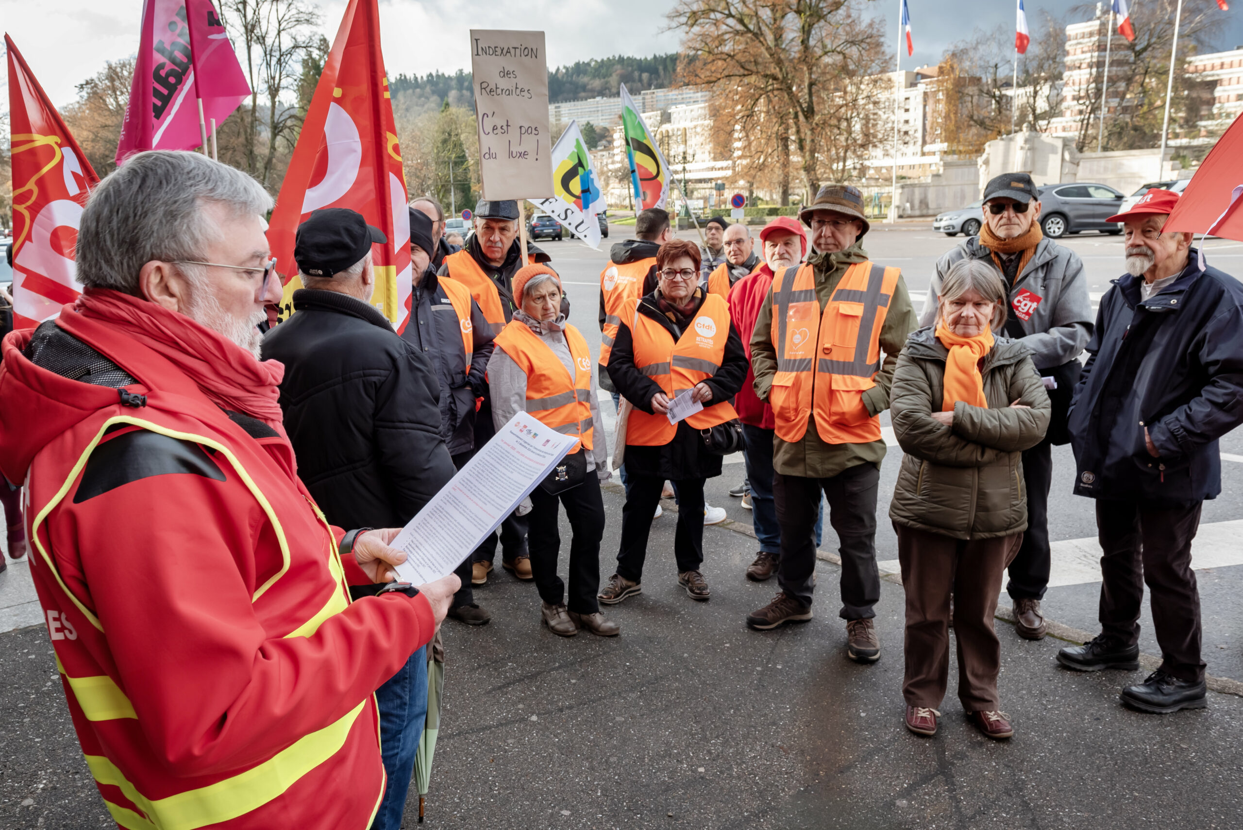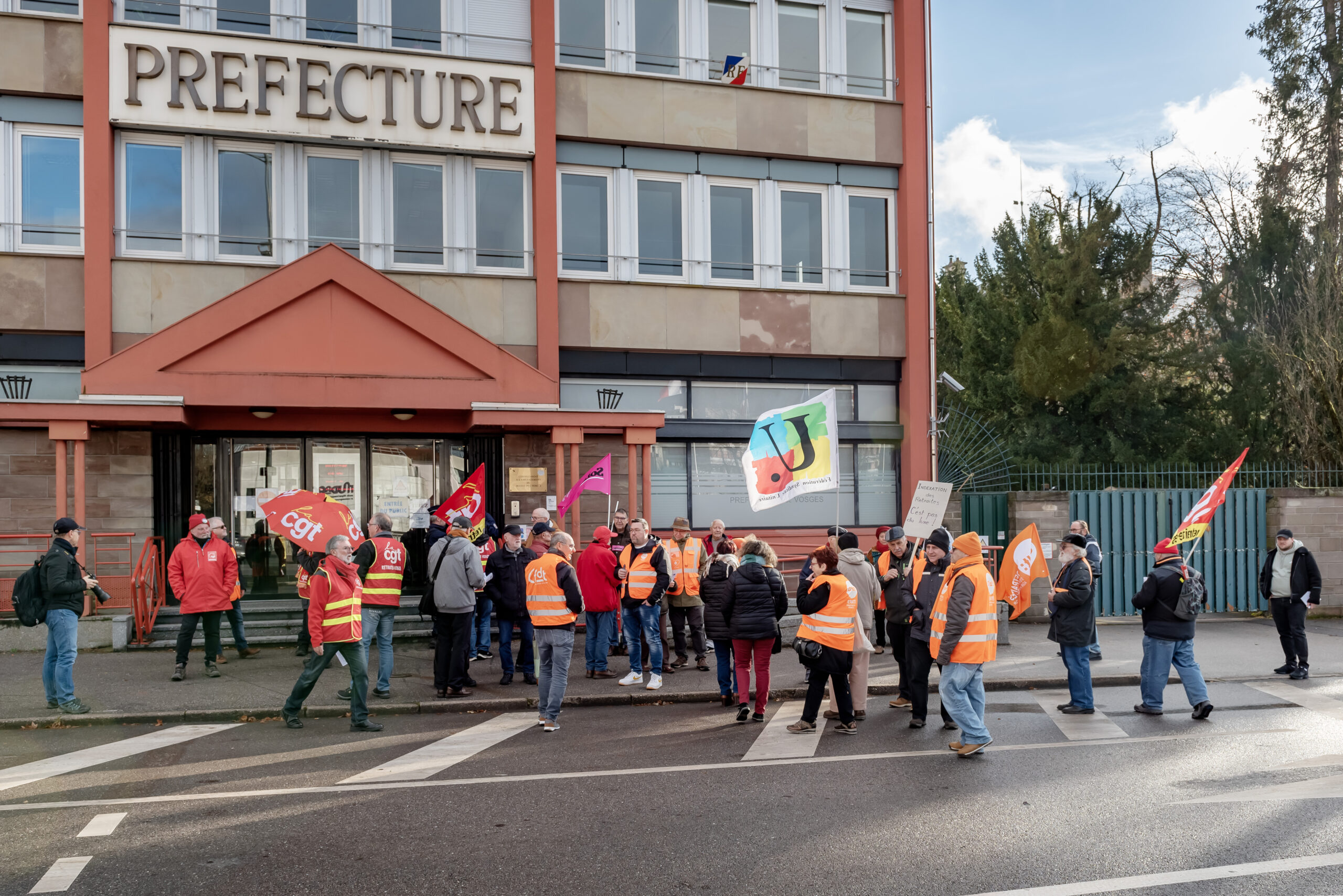 Ce mardi 3 décembre, les organisations syndicales de retraités des Vosges CFDT, CGT, FSU, FGR-FP et Solidaires avaient lancé un appel à une manifestation devant la Préfecture des Vosges, place Foch à Épinal.