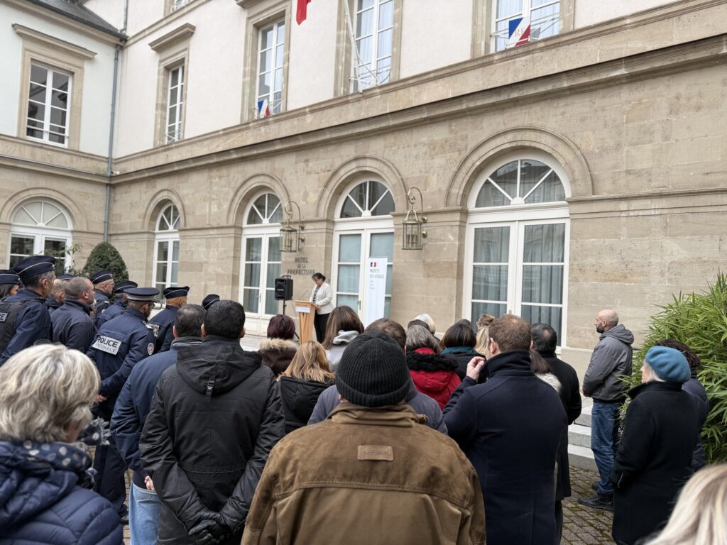 Ce lundi 30 décembre 2024, dans les Vosges, l’ensemble des agents de l’État a observé un moment de recueillement présidé par Lynda BOUDJEMA, directrice de cabinet de la Préfète des Vosges, en mémoire du capitaine Florian MONNIER, décédé en mission à Mayotte.
